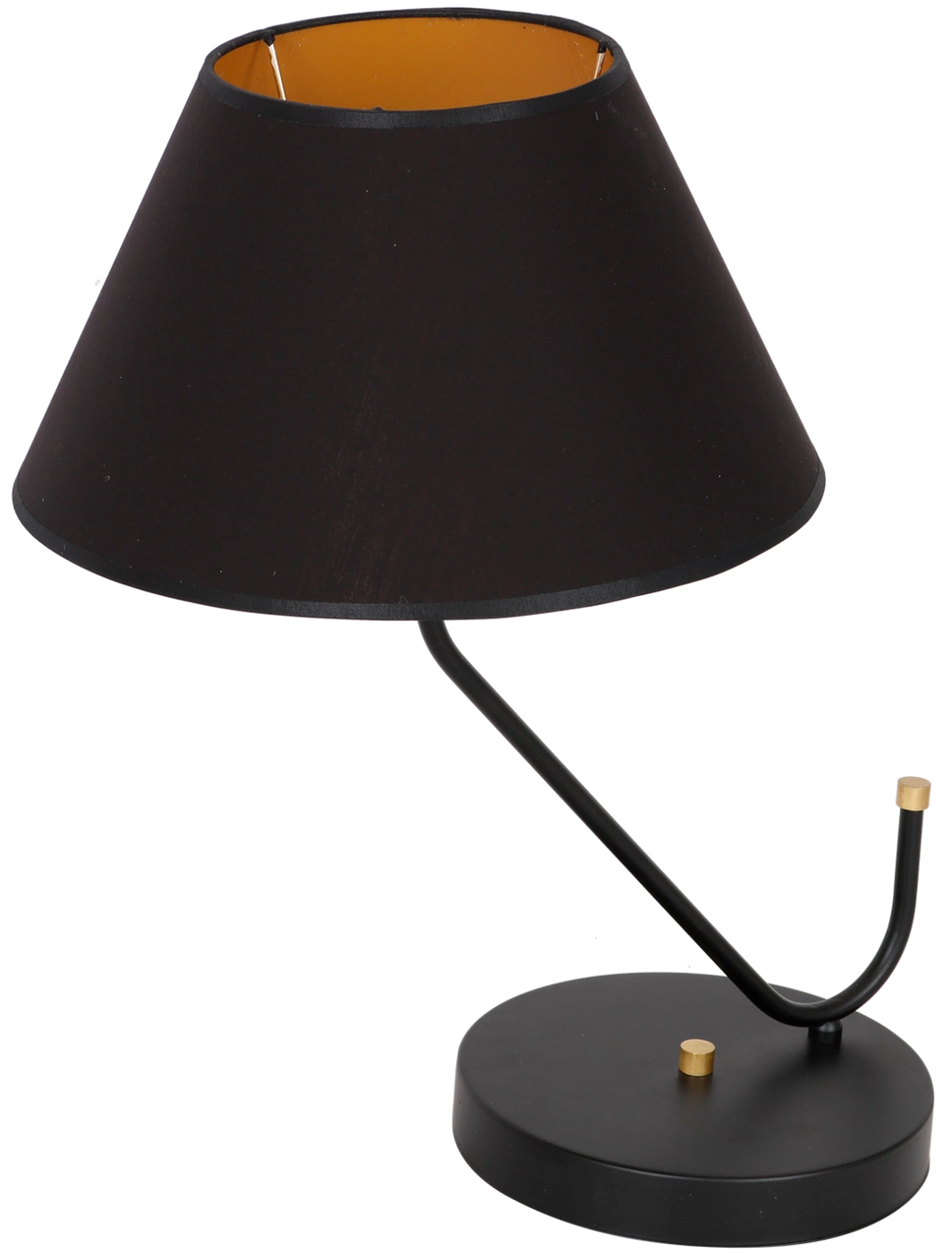VICTORIA MLP4914 to lampka stołowa z jednym źródłem światła. Korpus lampy został wykonany z wysokiej jakości metalu w kolorze czarnym. Lampa posiada klosz w formie trapezu osadzony na stylowo wygiętym ramieniu przytwierdzonym do podstawy. Abażur jest z tkaniny w kolorze czarnym na zewnątrz, od środka jest złoty. Lampka będzie idealnym wyborem do klasycznych wnętrz. Idealnie wkomponuje się do: salonu, sypialni, jadalni, pokoju młodzieżowego, lokalu. Może stanowić uzupełnienie lamp sufitowych i kinkietów tej serii jak i być oddzielnym elementem wystroju wnętrza. Wysokość lampki to: 50 cm, szerokość 30 cm, głębokość 45 cm. Klosz ma wysokość 18 cm. Źródłem światła jest żarówka typu E27 o mocy max 60W w ilości 1 szt.