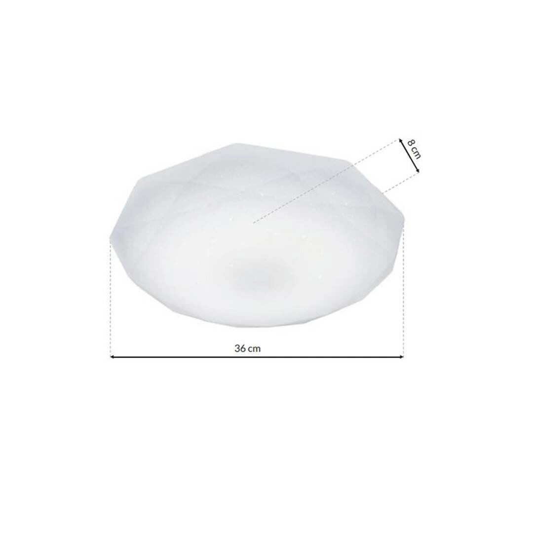 HEX EK75320 to nowoczesna lampa sufitowa. Wykonana została metalu i tworzywa sztucznego w kolorze białym. Lampa posiada stylowy klosz o oryginalnym kształcie, który po zapaleniu sprawia, że rozbłyskujące światło tworzy efekt gwiezdnego nieba. Będzie idealnym wyborem do: salonu, sypialni, pokoju młodzieżowego. Lampa ma wysokość: 8 cm i średnicę 36 cm. W lampie zastosowano wymienne źródło światła LED o mocy 16W, neutralnej barwie 4000K i jasności 1300lm.
