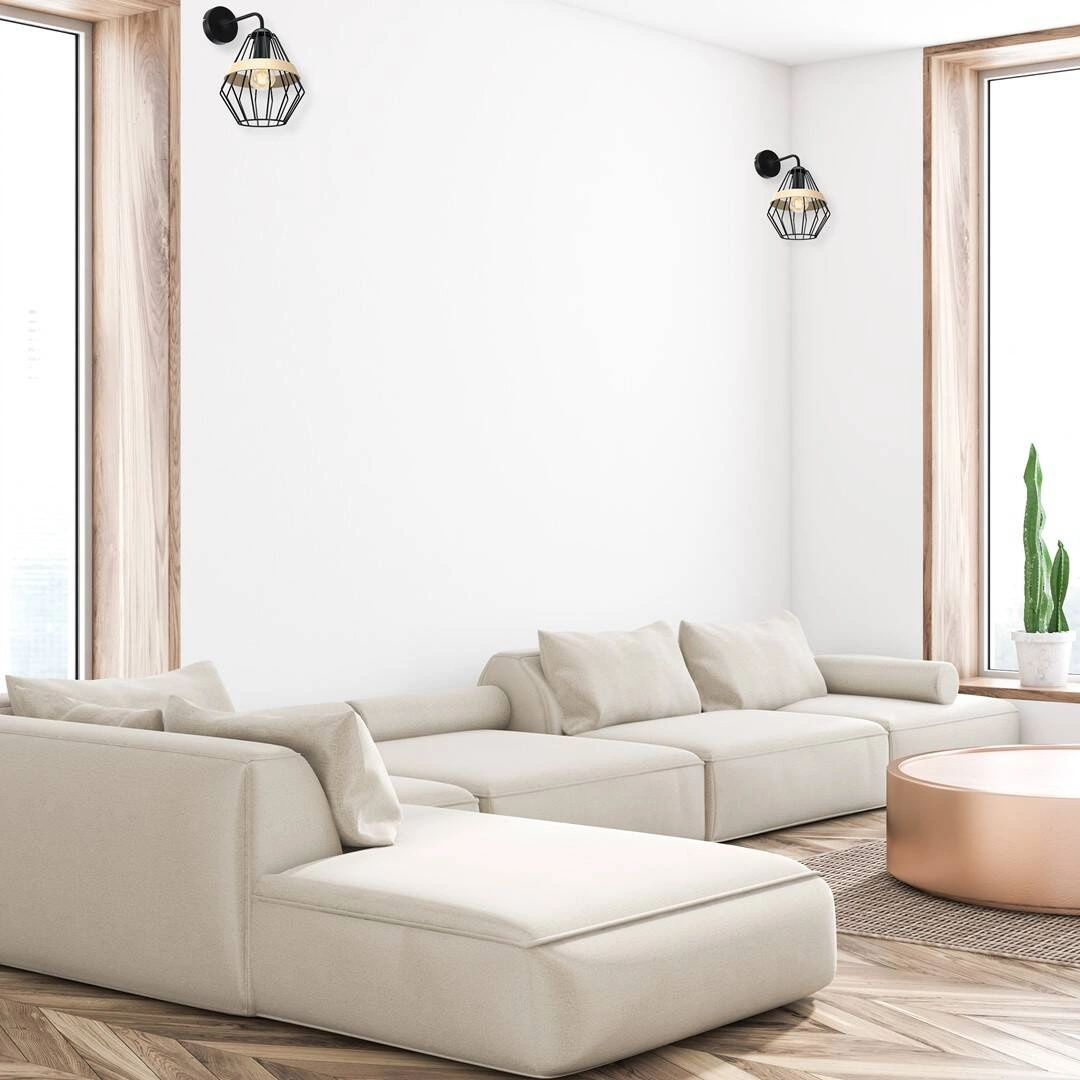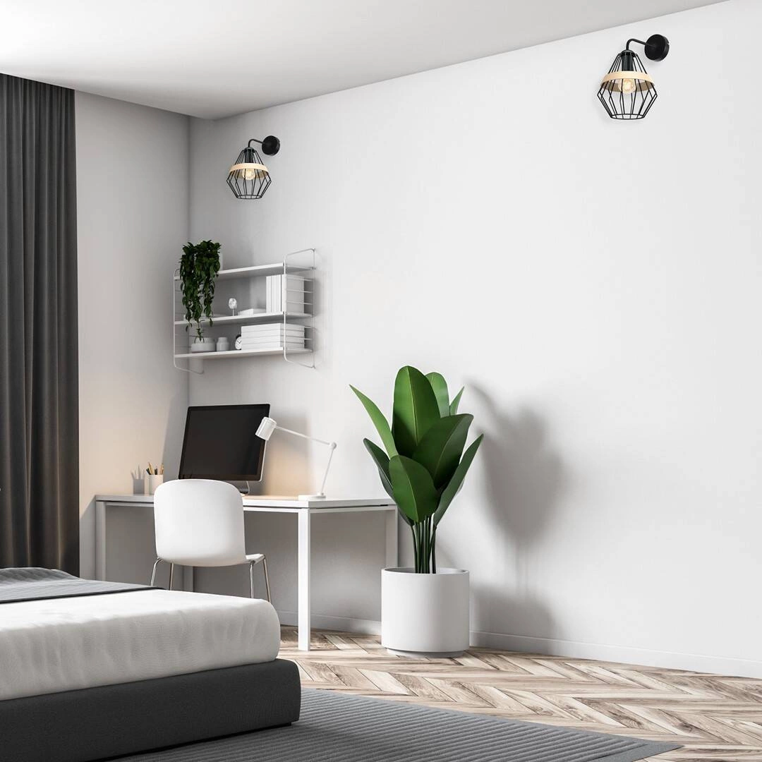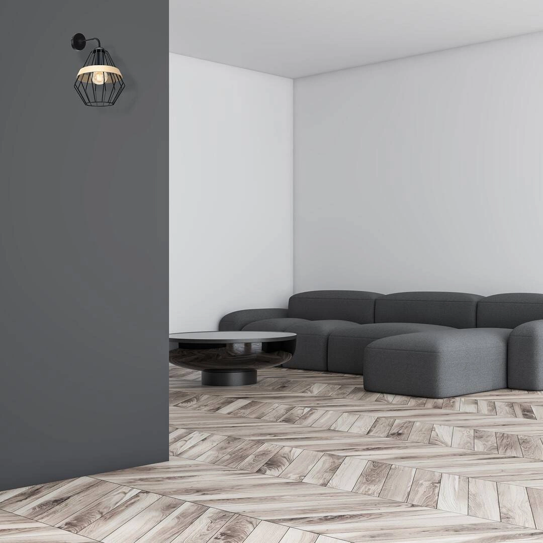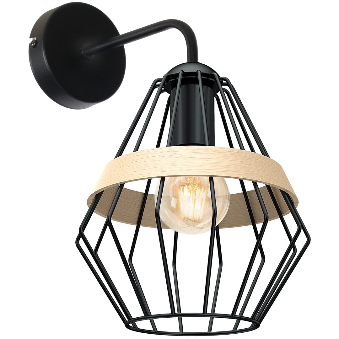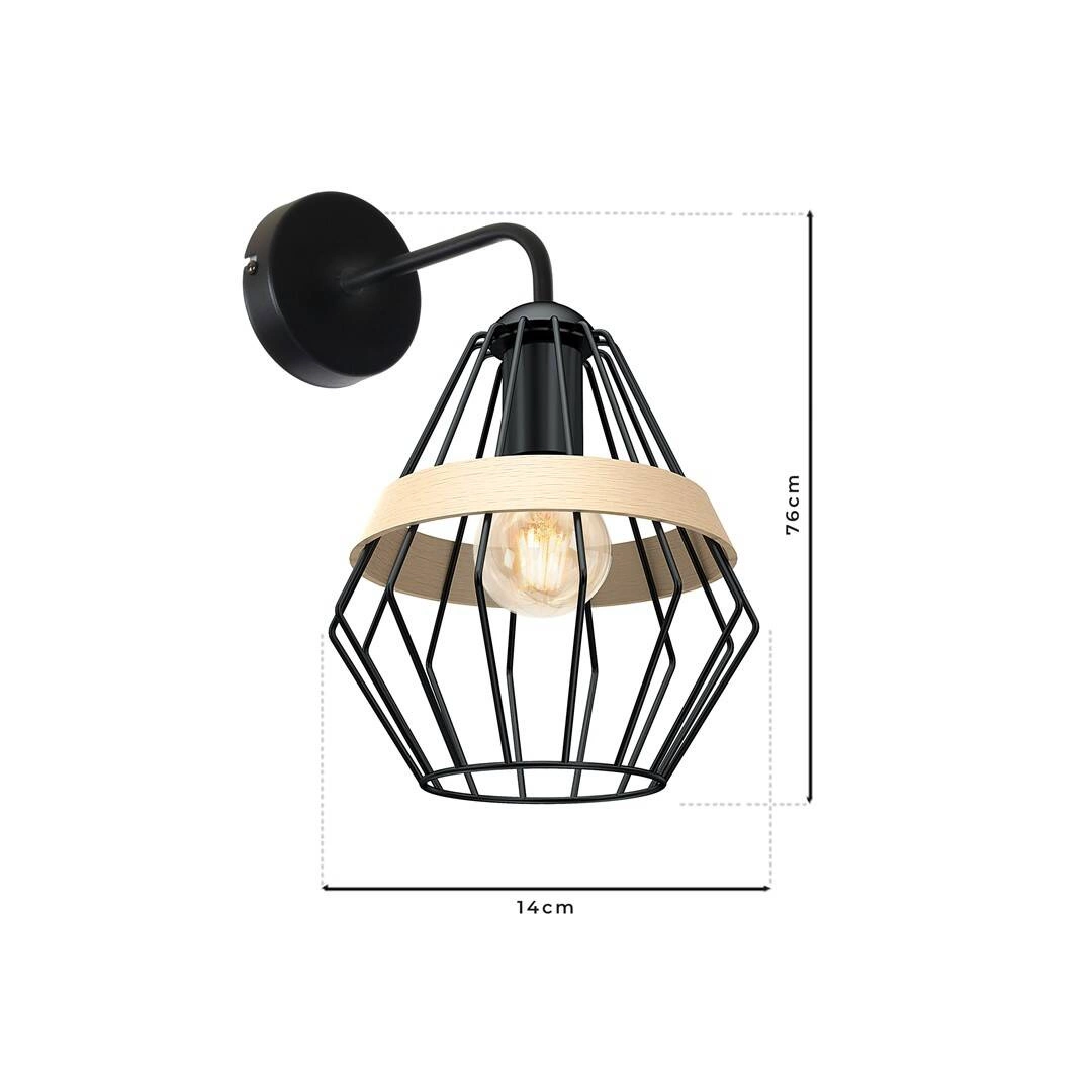 CLIFF BLACK MLP5523 to lampa ścienna z jednym źródłem światła. Wykonana jest wysokiej jakości metalu w kolorze czarnym. Elementem wyróżniającym kinkietu jest przestrzenny klosz z drutu o modnym kształcie eksponującym żarówkę ze stylowym pierścieniem z drewna. Lampa będzie idealnym wyborem do industrialnych oraz loftowych wnętrz. Doskonale wpasuje się do: salonu, sypialni, jadalni, pokoju młodzieżowego, gabinetu, korytarza. Może stanowić uzupełnienie lamp wiszących tej serii jak i być oddzielnym elementem wystroju wnętrza. Wysokość kinkietu to: 33 cm, szerokość 21 cm, głębokość 28 cm. Klosz ma wysokość 25 cm. Źródłem światła jest żarówka typu E27 o mocy max 60W w ilości 1 szt.