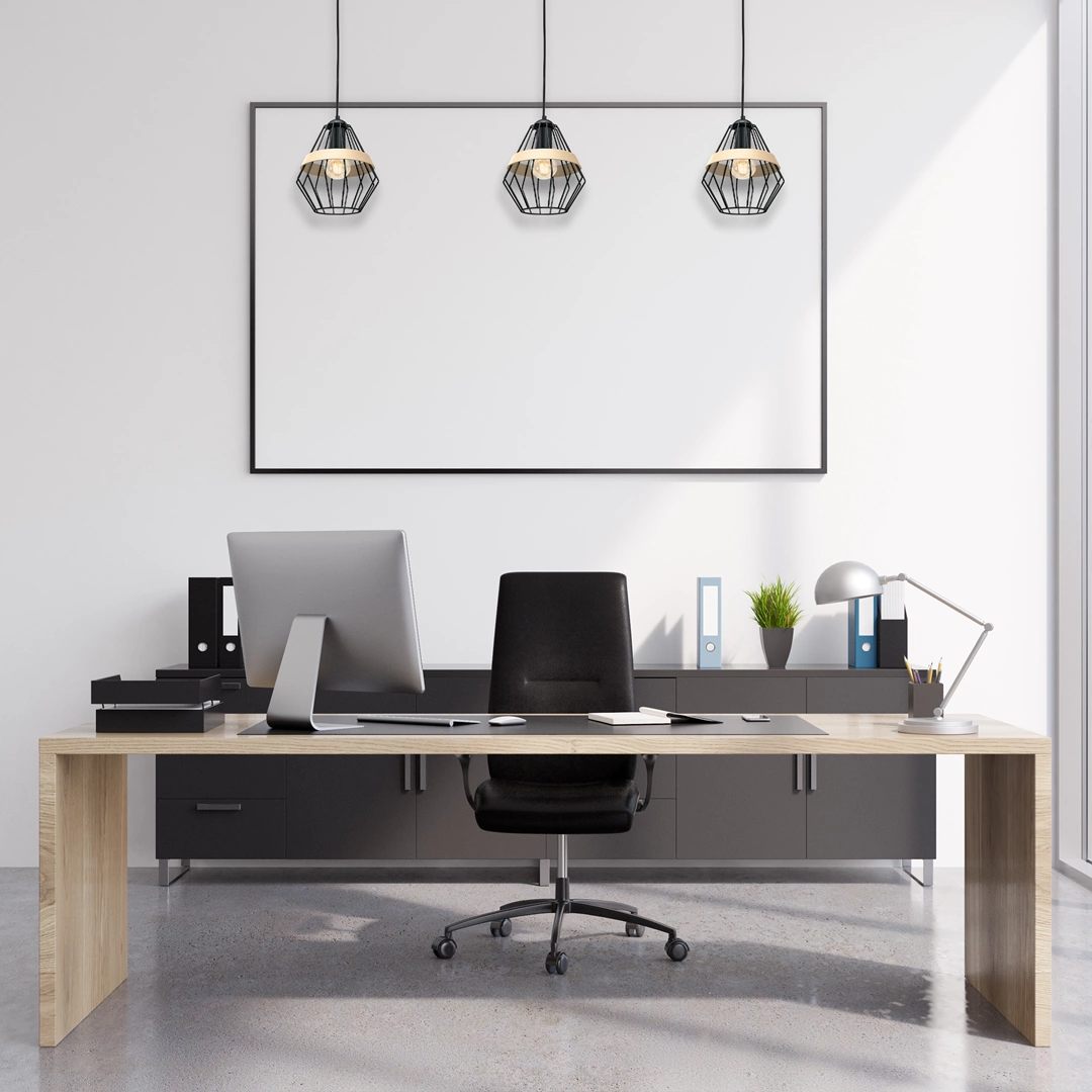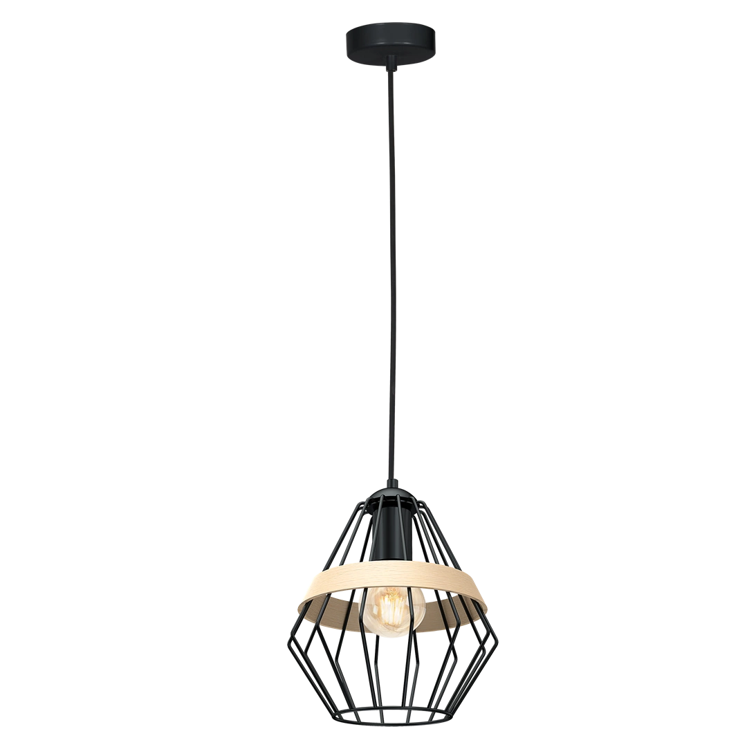 CLIFF BLACK MLP5524 to lampa wisząca z jednym źródłem światła. Wykonana jest wysokiej jakości metalu w kolorze czarnym. Elementem wyróżniającym lampy jest przestrzenny klosz z drutu o modnym kształcie eksponującym żarówkę ze stylowym pierścieniem z drewna. Lampa będzie idealnym wyborem do industrialnych oraz loftowych wnętrz. Doskonale wpasuje się do: salonu, sypialni, jadalni, pokoju młodzieżowego, gabinetu. Dużym atutem jest możliwość regulacji wysokości. Wysokość maksymalna lampy to: 100 cm, szerokość 21 cm, głębokość 21 cm. Klosz ma wysokość 25 cm. Źródłem światła jest żarówka typu E27 o mocy max 60W w ilości 1 szt.