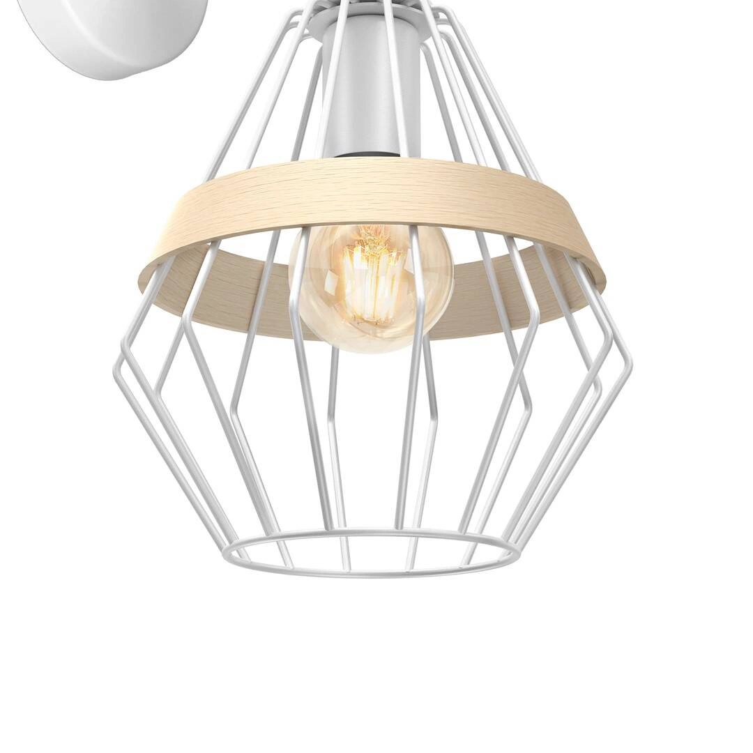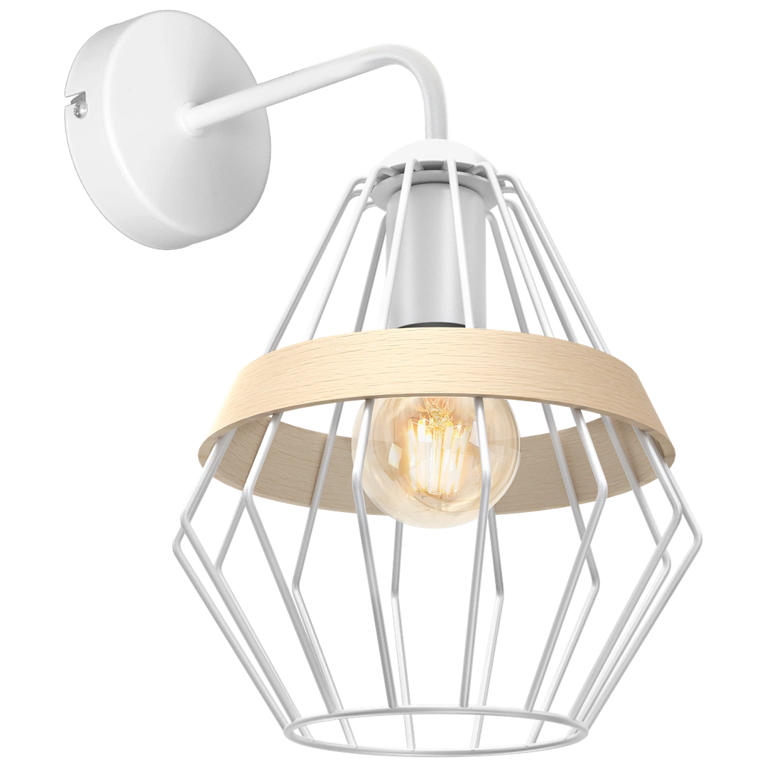 CLIFF WHITE MLP5517 to lampa ścienna z jednym źródłem światła. Wykonana jest wysokiej jakości metalu w kolorze białym. Elementem wyróżniającym kinkietu jest przestrzenny klosz z drutu o modnym kształcie eksponującym żarówkę ze stylowym pierścieniem z drewna. Lampa będzie idealnym wyborem do industrialnych oraz loftowych wnętrz. Doskonale wpasuje się do: salonu, sypialni, jadalni, pokoju młodzieżowego, gabinetu, korytarza. Może stanowić uzupełnienie lamp wiszących tej serii jak i być oddzielnym elementem wystroju wnętrza. Wysokość kinkietu to: 33 cm, szerokość 21 cm, głębokość 28 cm. Klosz ma wysokość 25 cm. Źródłem światła jest żarówka typu E27 o mocy max 60W w ilości 1 szt.
