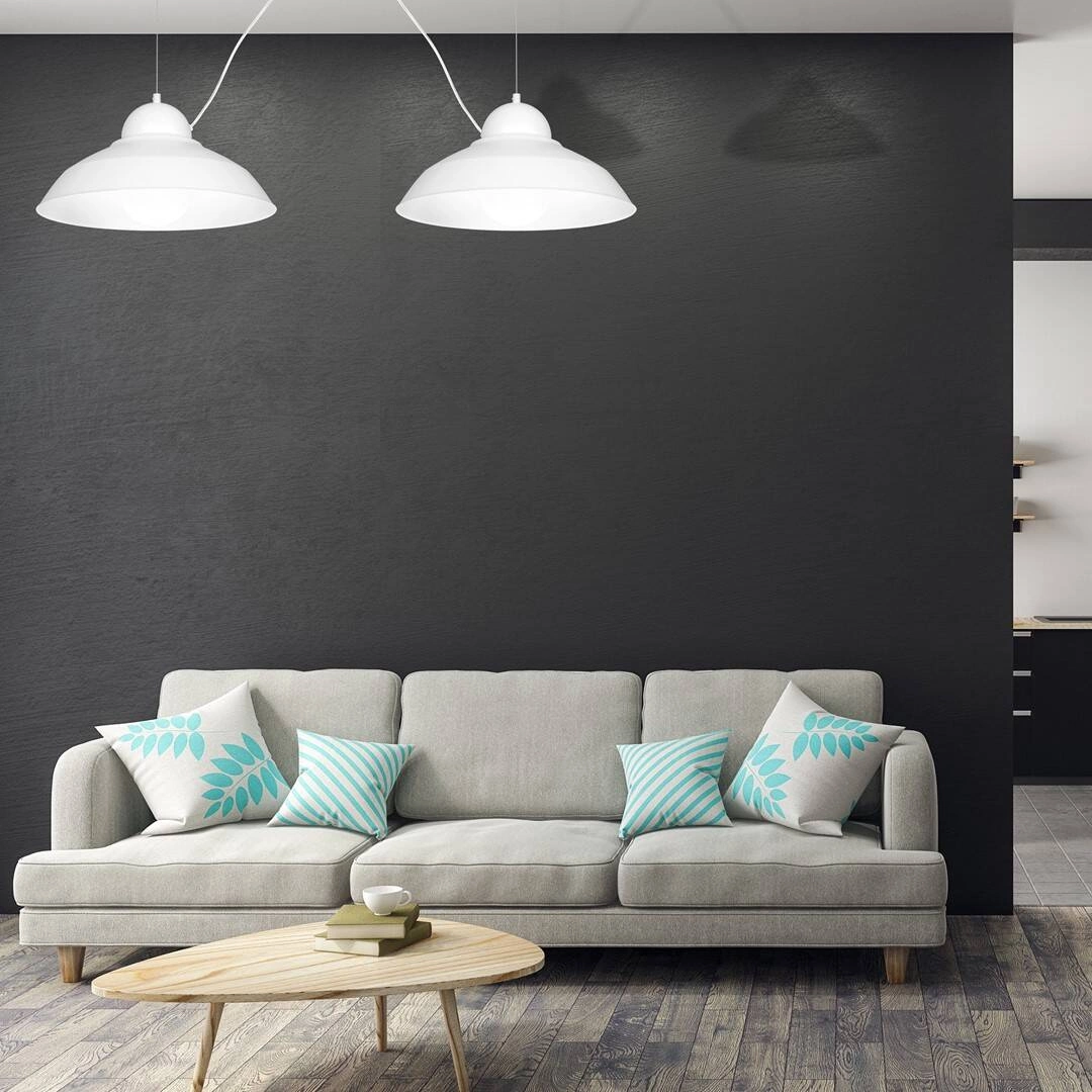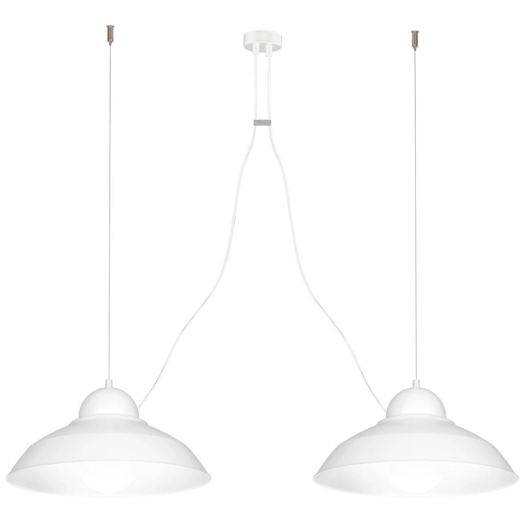 GUSTAV WHITE MLP4816 to nowoczesna lampa wisząca z dwoma źródłami światła. Wykonana została z wysokiej jakości metalu w kolorze białym. Lampa posiada dwa oryginalne stalowe klosze zawieszone w niespotykany sposób. Lampa będzie doskonałym wyborem do wnętrz industrialnych oraz loftowych. Idealnie wkomponuje się do: salonu, jadalni, kuchni, pokoju młodzieżowego, sypialni, gabinetu, biura. Dużym atutem jest możliwość regulacji wysokości i szerokości poprzez rozsuwanie kloszy bądź ich zbliżanie. Wysokość maksymalna lampy to: 110 cm, szerokość maksymalna 180 cm, głębokość 40 cm. Klosz ma wysokość 20 cm. Źródłem światła jest żarówka typu E27 o mocy max 60W w ilości 2 szt.