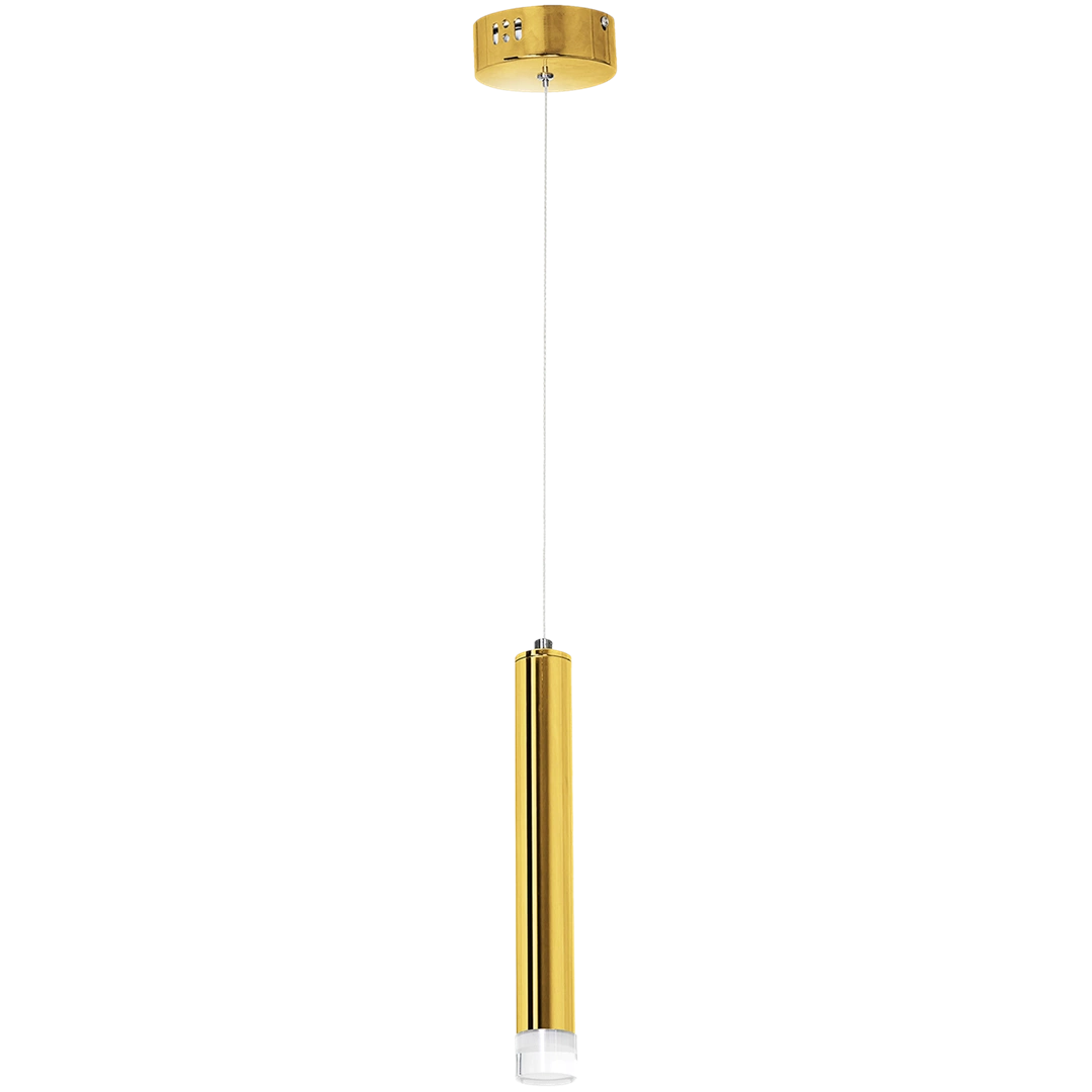 GOLDIE ML5713 to nowoczesna lampa wisząca z jednym źródłem światła. Wykonana została z wysokiej jakości metalu w kolorze złotym i akrylu. Lampa posiada zwisający smukły klosz w kształcie tuby przypominający sopel. Będzie idealnym wyborem do nowoczesnych oraz loftowych wnętrz. Doskonale będzie się prezentować w każdym pomieszczeniu. Dużą zaletą lampy jest możliwość regulacji wysokości. Wysokość maksymalna lampy to: 90 cm, szerokość 10 cm, głębokość 10 cm. Klosz ma wysokość 28 cm i średnicę 3,5 cm. Źródłem światła jest wbudowany moduły LED o mocy 5W LED 350lm 4000K. Źródło światła jest wymienne.