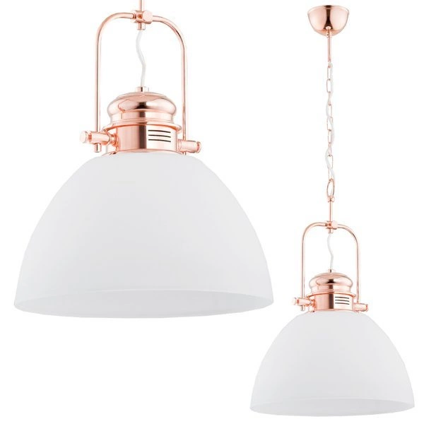 Lampa wisząca Inez w nowoczesnym stylu, wykonana z stopu metalu z pięknym szklanym abażurem w kolorze białym o średnicy 39cm.