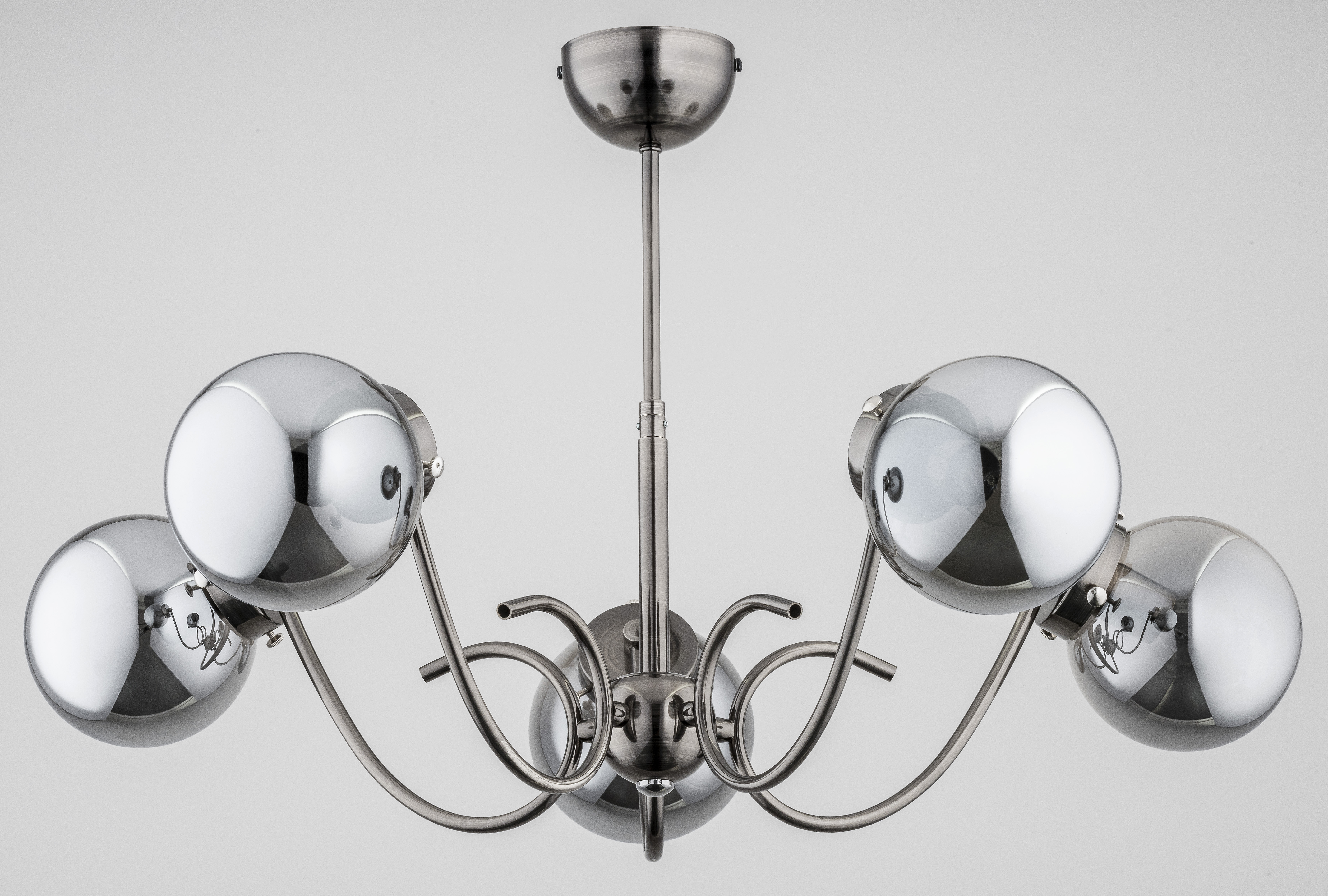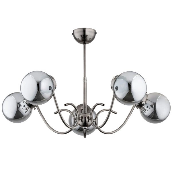Lampa wisząca Rapsody to wyjątkowo elegancka dekoracja dla twojego domu, wykonana z stopu metalu z pięknymi szklanymi kloszami w kolorze grafitowym