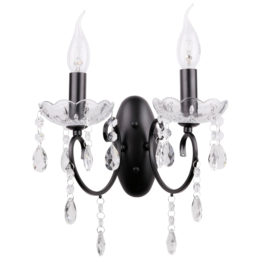 AURORA 22-73723 to bardzo elegancka, bogata w zdobienia lampa ścienna z dwoma źródłami światła. Wykonana została z wysokiej jakości stali w kolorze czarnym. Lampa ozdobiona jest szklanymi transparentnymi talerzykami pod oprawkami żarówek oraz kryształkami. Kinkiet nie posiada kloszy co sprawia, że odsłonięte żarówki są elementami ozdobnymi dlatego warto wybrać ich dekoracyjny model (najkorzystniej prezentuje się z żarówkami o świecznikowym kształcie). Oprawa będzie idealnym wyborem do wnętrz urządzonych w klasycznym stylu. Doskonale będzie się prezentować w: salonie jadalni, sypialni, salach weselnych, bankietowych, przedpokojach, korytarzach. Wysokość kinkietu to: 25 cm, szerokość 27 cm, głębokość 20 cm. Źródłem światła jest żarówka typu E14 o mocy max 40W w ilości 2 szt.