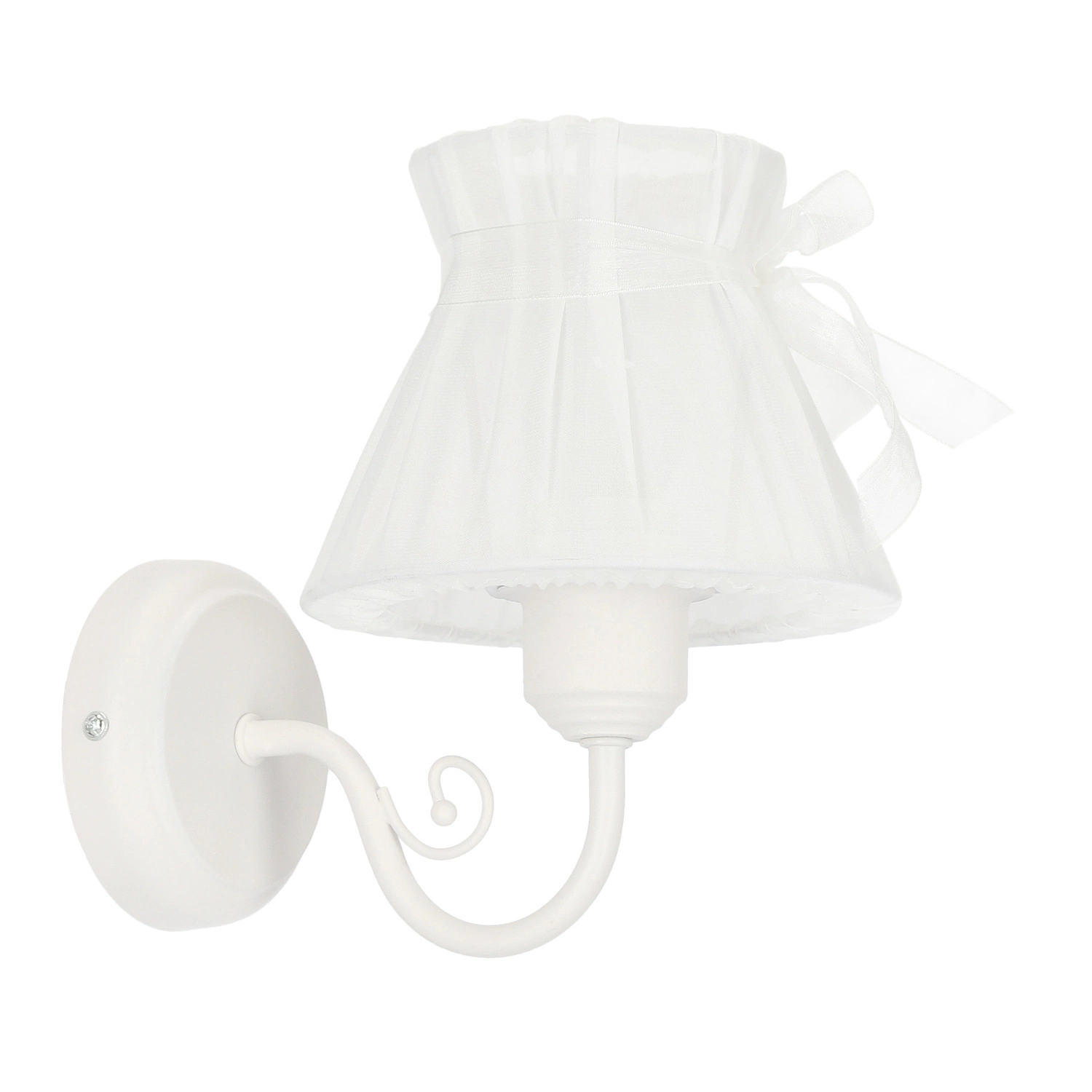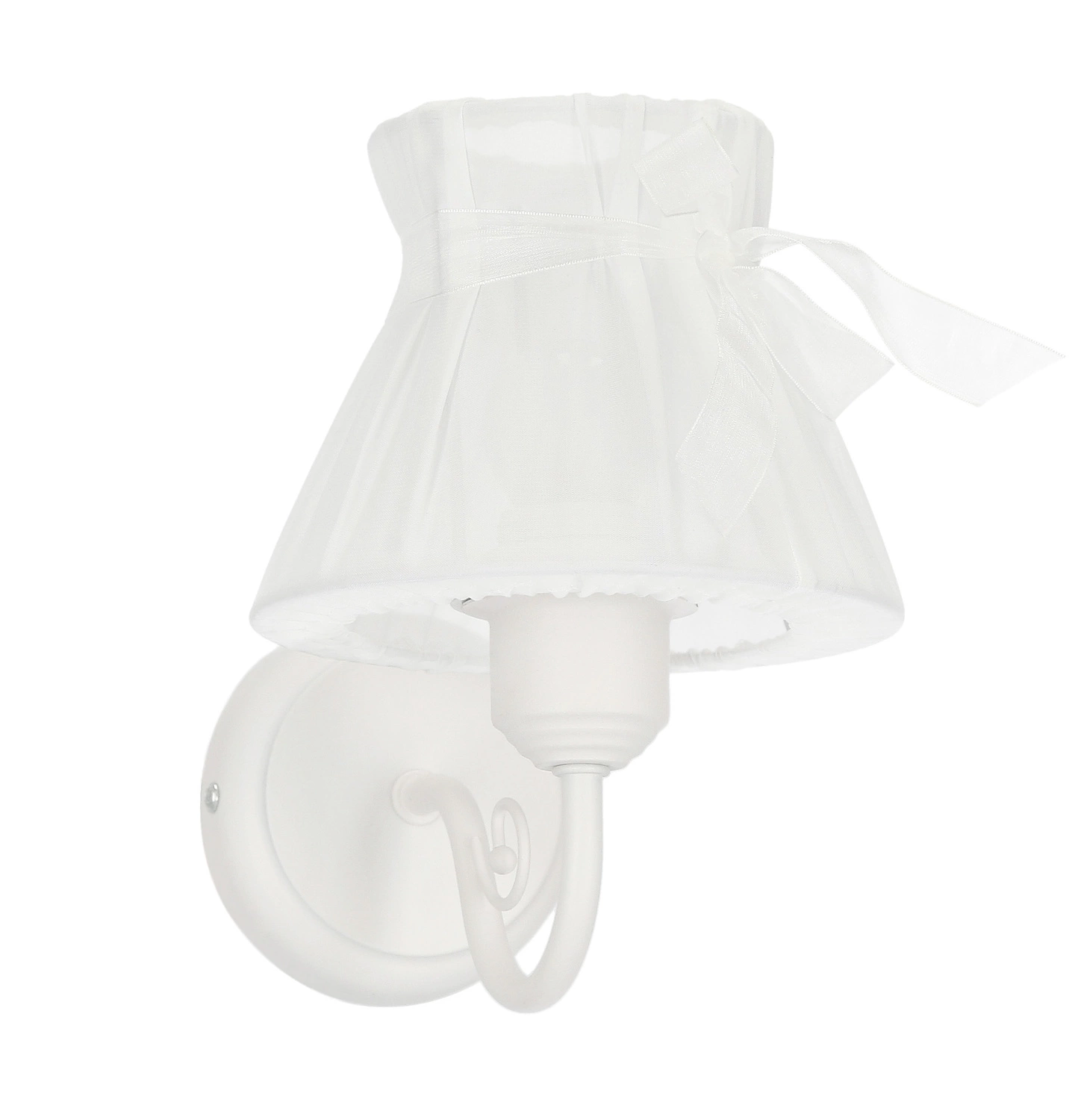 ZEFIR 21-73785 nowoczesna lampa ścienna z jednym źródłem światła. Korpus lampy wykonano z wysokiej jakości stali, abażur jest z organzy przewiązany delikatną wstążką. Całość jest w kolorze białym. Kinkiet będzie idealnym wyborem do wnętrz urządzonych w klasycznym oraz nowoczesnym stylu. Doskonale będzie się prezentować w: salonie, sypialni, jadalni, pokoju młodzieżowym, gabinecie, przedpokoju, korytarzu. Wysokość kinkietu to: 20 cm, szerokość 16 cm, głębokość 21 cm. Źródłem światła jest żarówka typu E27 o mocy max 40W w ilości 1 szt.