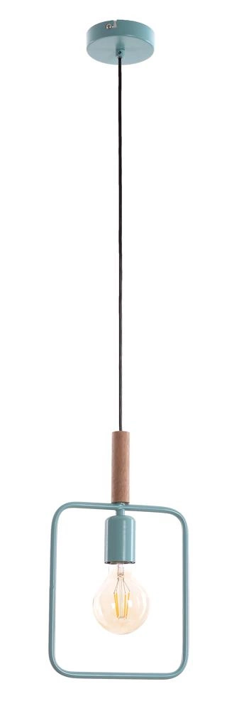 FRAME 31-73556 to nowoczesna lampa wisząca z jednym źródłem światła. Wykonana została z wysokiej jakości stali w kolorze miętowym i drewna. Klosz lampy stanowi prostokątna ramka wewnątrz której osadzono oprawkę żarówki. Kształt klosza sprawia, że odsłonięta żarówka jest elementem ozdobnym lampy dlatego warto wybrać jej dekoracyjny model. Lampa będzie idealnym wyborem do nowoczesnych wnętrz. Doskonale wpasuje się do: jadalni, salonu, sypialni, pokoju młodzieżowego, gabinetu, lokalu, kuchni. Dużym atutem jest możliwość regulacji wysokości. Wysokość maksymalna to: 110 cm, szerokość 20 cm, głębokość 6 cm. Źródłem światła jest żarówka typu E27 o mocy max 60W w ilości 1 szt.