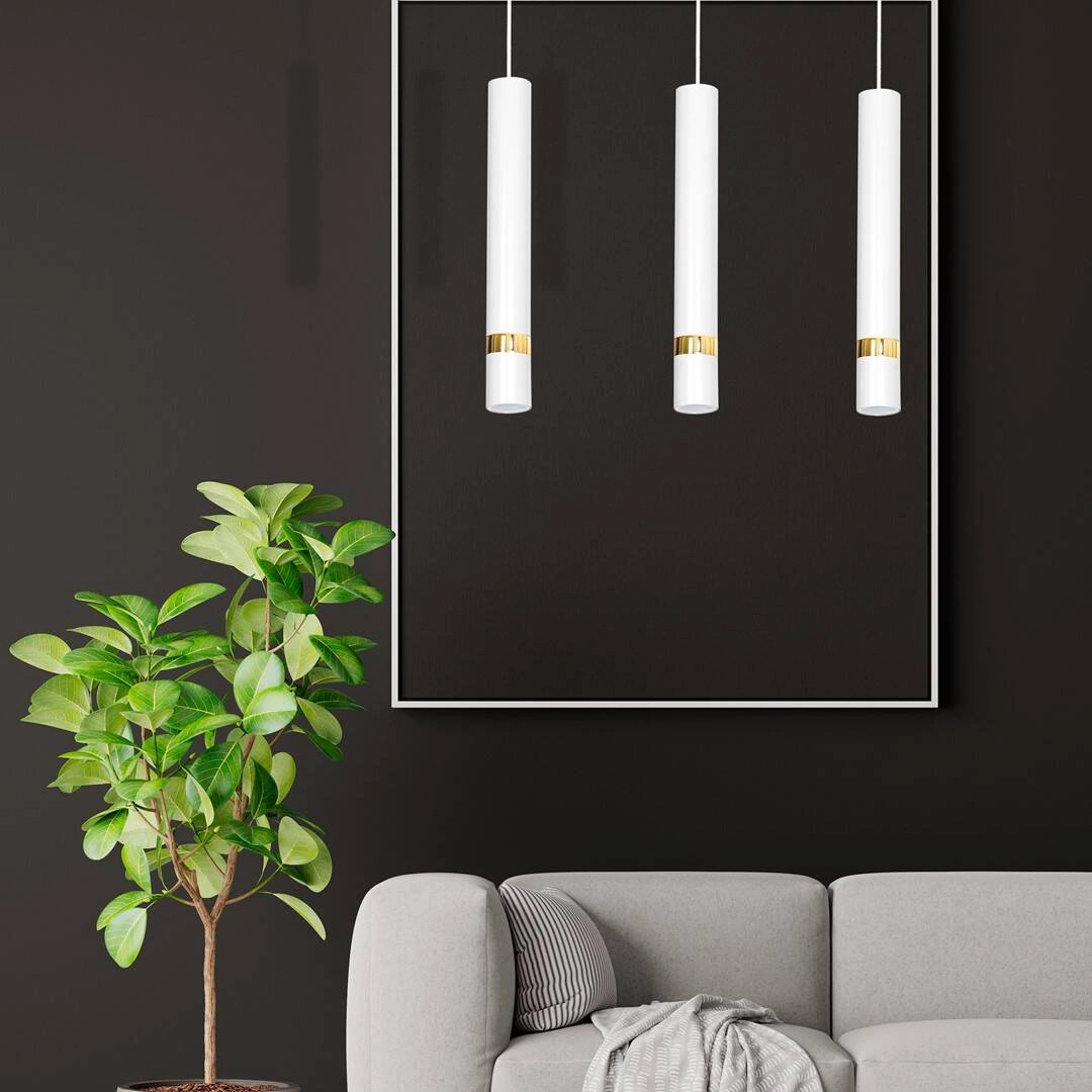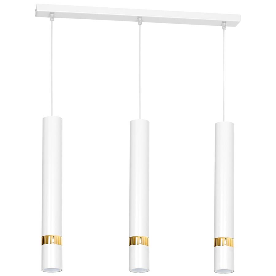 JOKER MLP6082 to stylowa lampa wisząca z trzema źródłami światła. Wykonana została z wysokiej jakości metalu w kolorze białym ze złotymi wstawkami. Oprawa będzie idealnym wyborem do wnętrz urządzonych w stylu klasycznym, nowoczesnym oraz minimalistycznym. Doskonale będzie się prezentować w: salonie, jadalni, sypialni, pokoju młodzieżowym, gabinecie, biurze, lokalu, przedpokoju, kuchni. Dużym atutem jest możliwość regulacji wysokości. Wysokość maksymalna lampy to: 80 cm, szerokość 60 cm, głębokość 6 cm. Źródłem światła jest żarówka typu GU10 o mocy max 8W w ilości 3 szt.
