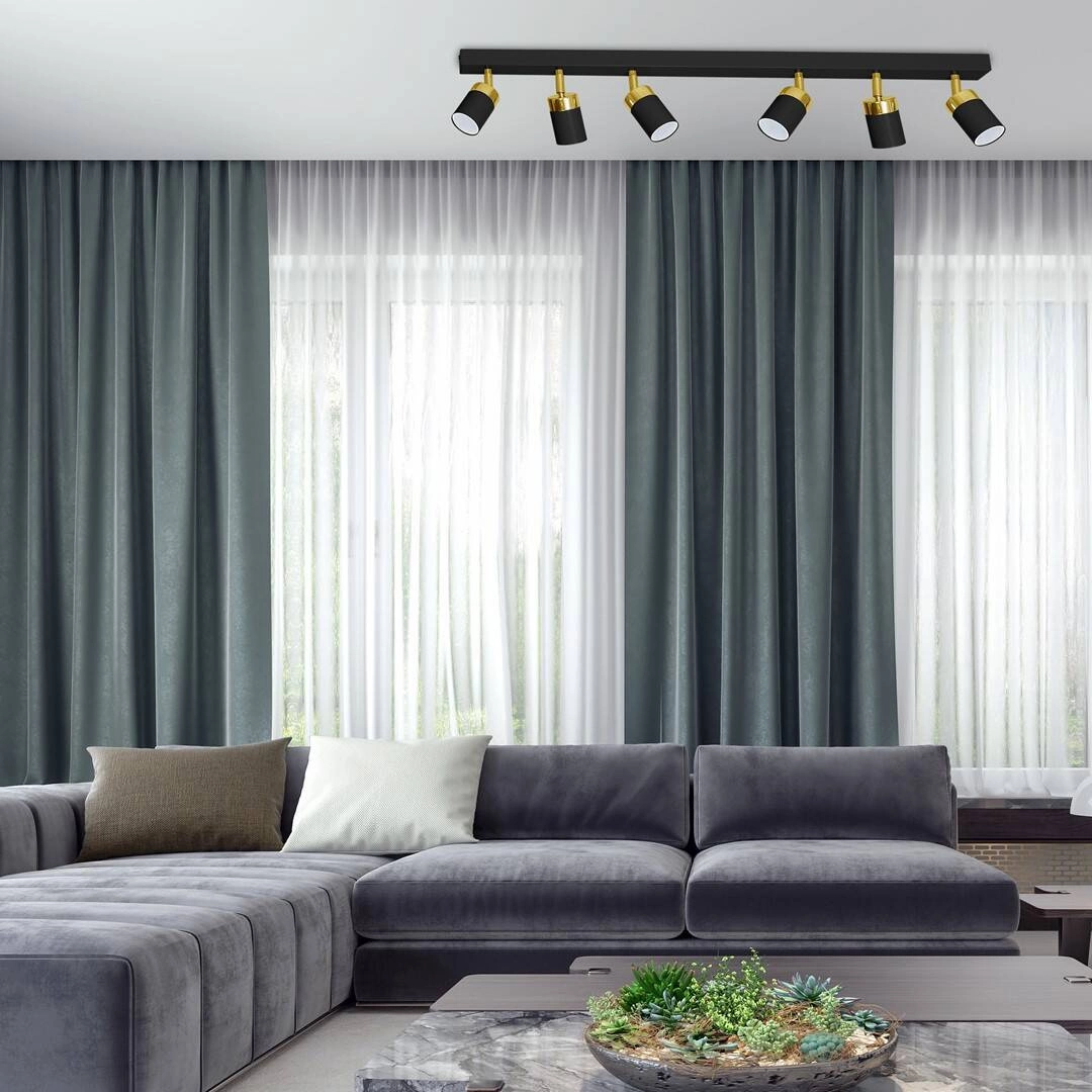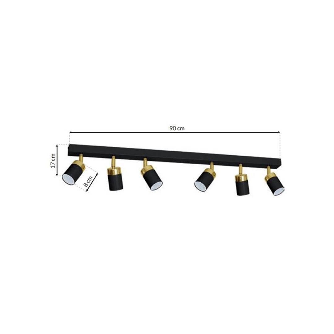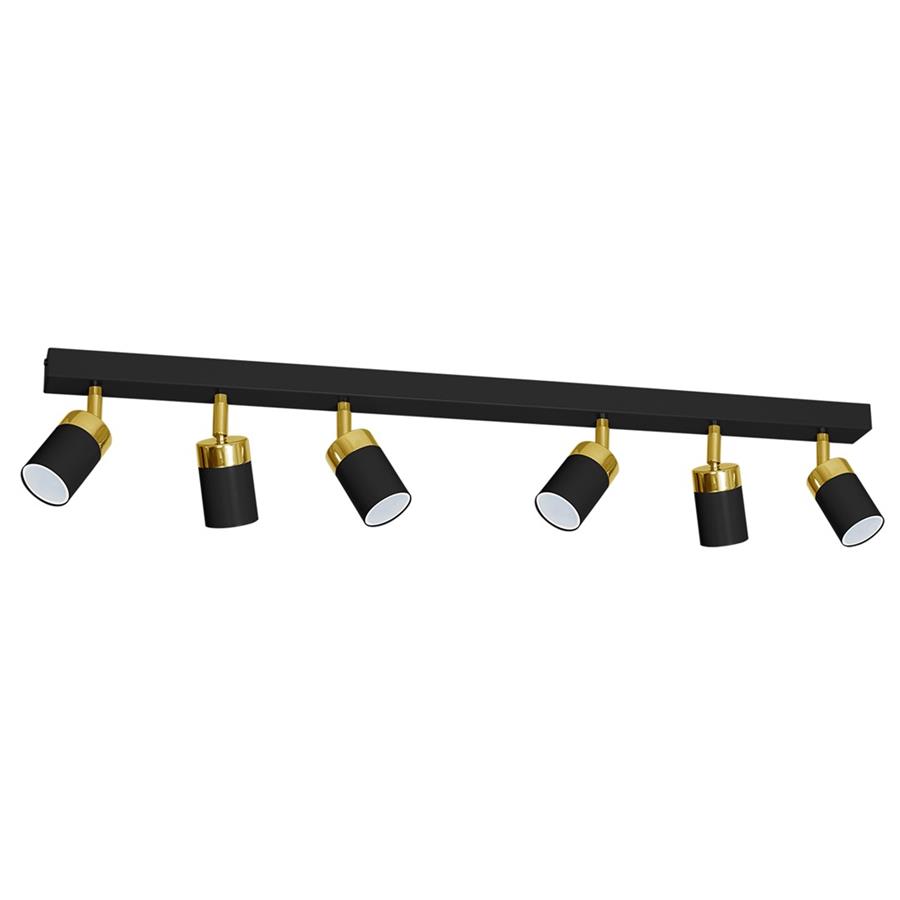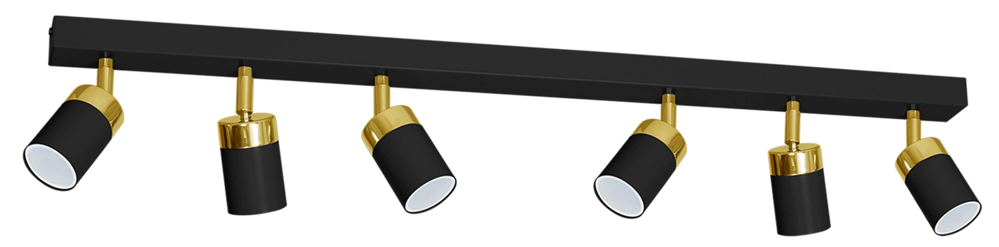 JOKER MLP6126 to stylowa lampa sufitowa z sześcioma źródłami światła. Wykonana została z wysokiej jakości metalu w kolorze czarno-złotym. Klosze lampy mają możliwość regulacji kąta padania światła. Oprawa będzie idealnym wyborem do wnętrz urządzonych w stylu klasycznym, nowoczesnym oraz minimalistycznym. Doskonale będzie się prezentować w: salonie, jadalni, sypialni, pokoju młodzieżowym, gabinecie, biurze, lokalu, przedpokoju, korytarzu, kuchni. Wysokość lampy to: 17 cm, szerokość 90 cm, głębokość 5,5 cm. Źródłem światła jest żarówka typu GU10 o mocy max 8W w ilości 6 szt.