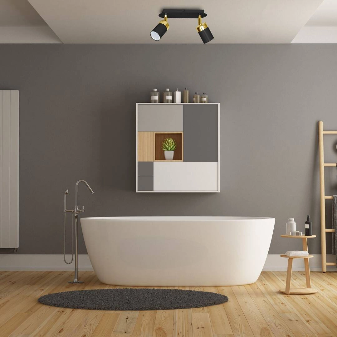 JOKER MLP6124 to stylowa lampa sufitowa z dwoma źródłami światła. Wykonana została z wysokiej jakości metalu w kolorze czarno-złotym. Klosze lampy mają możliwość regulacji kąta padania światła. Oprawa będzie idealnym wyborem do wnętrz urządzonych w stylu klasycznym, nowoczesnym oraz minimalistycznym. Doskonale będzie się prezentować w: salonie, jadalni, sypialni, pokoju młodzieżowym, gabinecie, biurze, lokalu, przedpokoju, korytarzu, kuchni. Wysokość lampy to: 17 cm, szerokość 24 cm, głębokość 5,5 cm. Źródłem światła jest żarówka typu GU10 o mocy max 8W w ilości 2 szt.