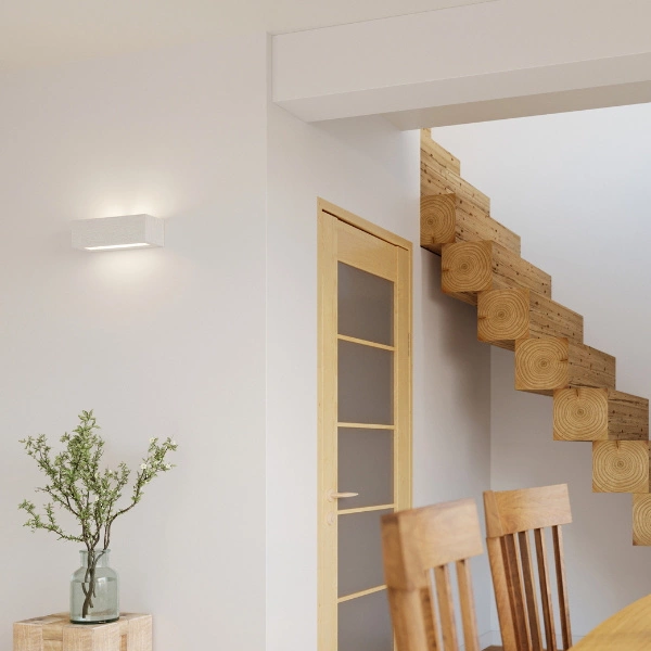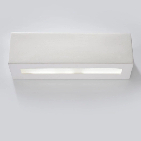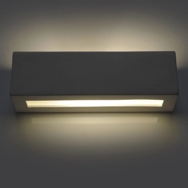 VEGA SL.0006 to nowoczesna lampa ścienna z jednym źródłem światła. Wykonana została z wypalanej ceramiki w kolorze białym (może być malowana dowolnymi farbami do ścian). Kinkiet od dołu posiada matową szybę a od góry jest otwarty, dzięki czemu światło rozchodzi się zarówno górą jak i dołem. Będzie idealnym wyborem do wnętrz urządzonych w stylu nowoczesnym, skandynawskim oraz minimalistycznym. Doskonale będzie się prezentować w: salonie, jadalni, sypialni, pokoju młodzieżowym, gabinecie, biurze, lokalu, korytarzu, przedpokoju. Wysokość kinkietu to: 9 cm, szerokość 32 cm, głębokość 9 cm. Źródłem światła jest żarówka typu E27 o mocy max 15W LED w ilości 1 szt.