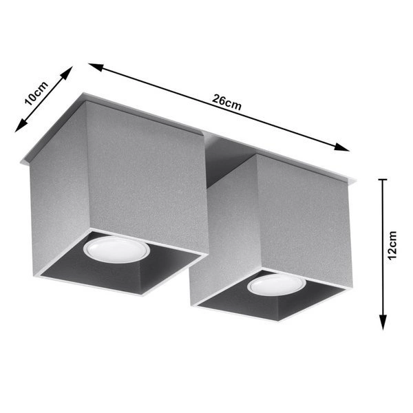 Plafon Sollux QUAD 2 jest lampą sufitową dwu punktową. Została wykonana z Aluminium w kolorze szarym.