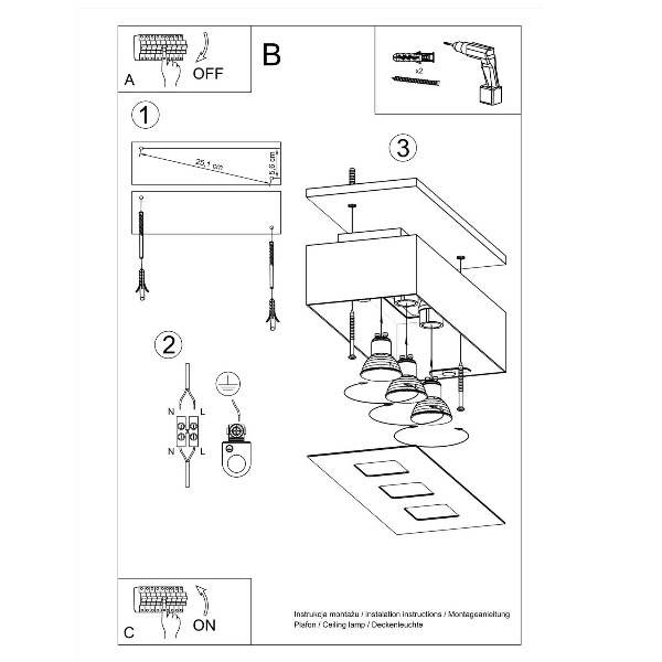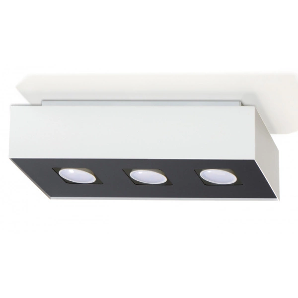 MONO 3 SL.0068 to nowoczesna lampa sufitowa z trzema źródłami światła. Wykonana została z wysokiej jakości stali w kolorze biało-czarnym. Plafon będzie idealnym wyborem do wnętrz urządzonych w nowoczesnym stylu. Doskonale będzie się prezentować w: salonie, jadalni, sypialni, pokoju młodzieżowym, gabinecie, biurze, lokalu, kuchni. Wysokość plafonu to: 11 cm, szerokość 34 cm, głębokość 14 cm. Źródłem światła jest żarówka typu GU10 o mocy max 12W LED w ilości 3 szt.