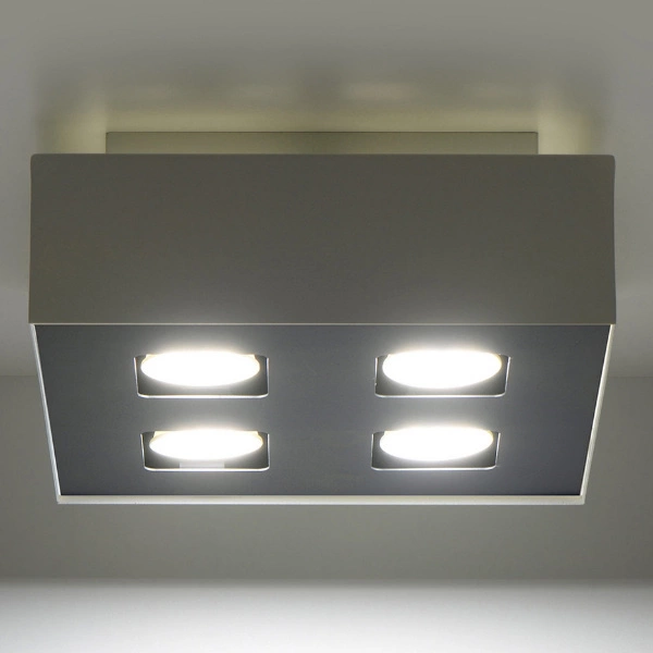 MONO 4 SL.0069 to nowoczesna lampa sufitowa z czterema źródłami światła. Wykonana została z wysokiej jakości stali w kolorze biało-czarnym. Plafon będzie idealnym wyborem do wnętrz urządzonych w nowoczesnym stylu. Doskonale będzie się prezentować w: salonie, jadalni, sypialni, pokoju młodzieżowym, gabinecie, biurze, lokalu, kuchni. Wysokość plafonu to: 11 cm, szerokość 24 cm, głębokość 24 cm. Źródłem światła jest żarówka typu GU10 o mocy max 12W LED w ilości 4 szt.