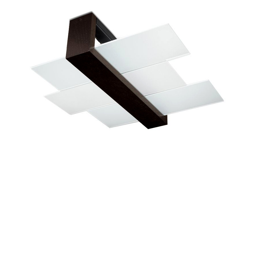 Plafon Sollux FENIKS 2 jest lampą sufitową dwu punktową ( E27, 2 x 15W LED ). Została wykonana z drewna w kolorze wenge oraz matowymi szybami.