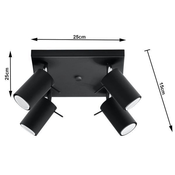 Plafon RING jest lampą sufitową 4 punktową o mocy 12W LED każda ( GU10, 4 X 12W LED ). Lampa wykonana jest z stali w kolorze czarnym.