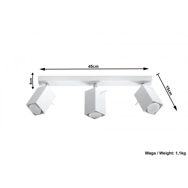 MERIDA 3 SL.0097 to nowoczesna lampa sufitowa z trzema źródłami światła. Wykonana została z wysokiej jakości metalu w kolorze białym. Lampa składa się z podłużnej podsufitki z krótkimi ramionami, na których osadzono trzy reflektorki. Reflektorki mają możliwość regulacji punktu padania światła. Lampa będzie idealnym wyborem do nowoczesnych oraz industrialnych wnętrz. Doskonale będzie się prezentować w: salonie, jadalni, sypialni, pokoju młodzieżowym, gabinecie, biurze, przedpokoju, korytarzu. Wysokość lampy to: 15 cm, szerokość 45 cm, głębokość 8 cm. Źródłem światła jest żarówka typu GU10 o mocy max 12W LED w ilości 3 szt.