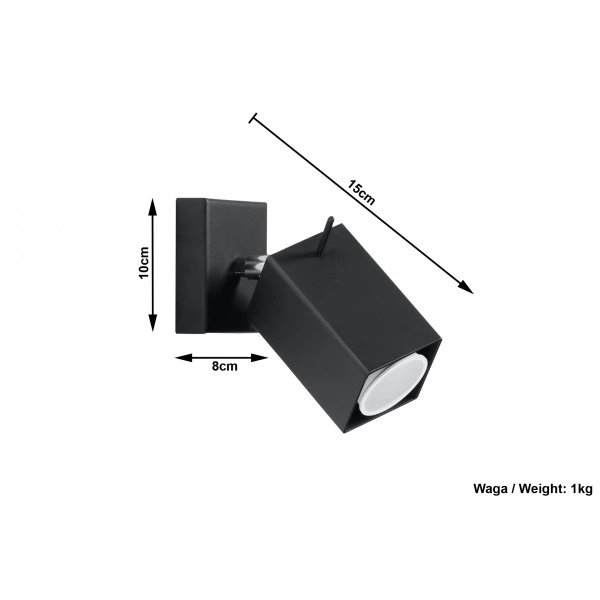 MERIDA 1 SL.0099 to nowoczesna lampa ścienna z jednym źródłem światła. Wykonana została z wysokiej jakości metalu w kolorze czarnym. Lampa składa się z kwadratowej rozety z krótkim ramieniem, na którym osadzono reflektorek. Reflektorek ma możliwość regulacji punktu padania światła. Kinkiet będzie idealnym wyborem do nowoczesnych oraz industrialnych wnętrz. Doskonale będzie się prezentować w: salonie, jadalni, sypialni, pokoju młodzieżowym, gabinecie, biurze, przedpokoju, korytarzu. Wysokość kinkietu to: 10 cm, szerokość 8 cm, głębokość 15 cm. Źródłem światła jest żarówka typu GU10 o mocy max 12W LED w ilości 1 szt.