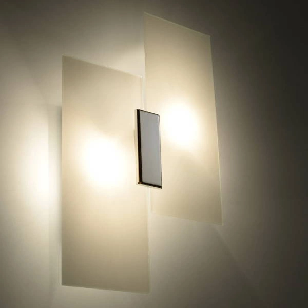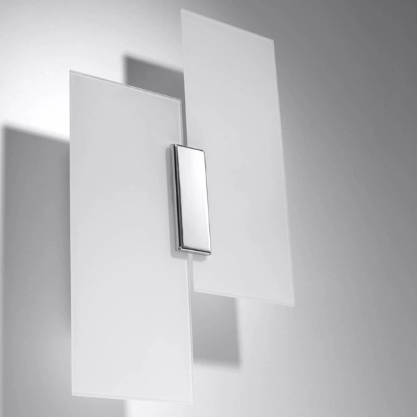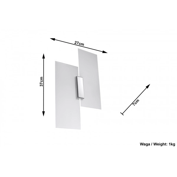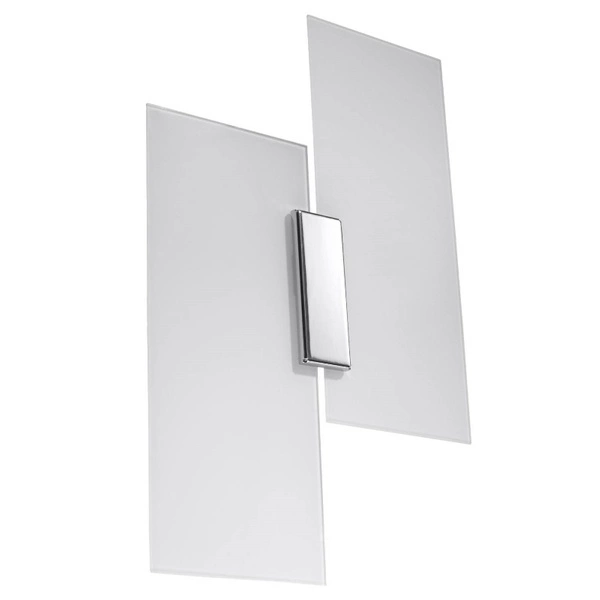 FABIANO SL.0197 to nowoczesna lampa ścienna z dwoma źródłami światła. Wykonana została z chromowanej stali i białego szkła. Kinkiet będzie idealnym wyborem do nowoczesnych wnętrz. Doskonale będzie się prezentować w każdym pomieszczeniu. Wysokość kinkietu to: długość 27 cm, szerokość 37 cm, wysokość 7 cm. Źródłem światła jest żarówka typu E27 o mocy max 15W LED w ilości 2 szt.