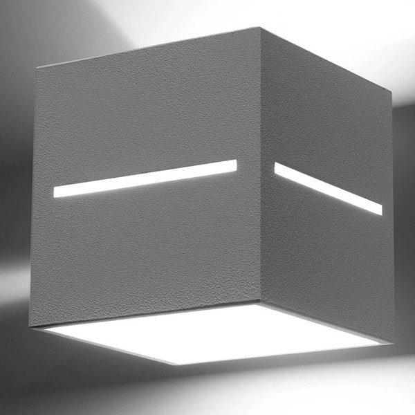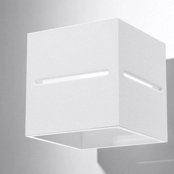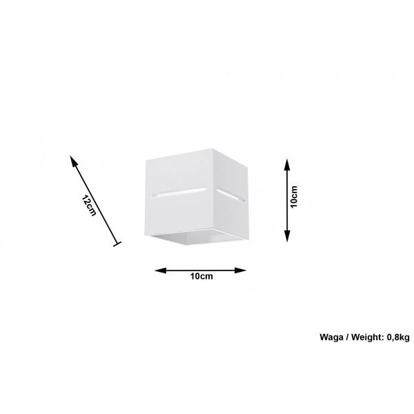 LOBO SL.0206 to nowoczesna lampa ścienna z jednym źródłem światła. Wykonana została z aluminium kolorze białym. Kinkiet ma kształt kostki z liniowymi wycięciami na bocznych ścianach, które przepuszczając światło tworzą niesamowity efekt. Oprawa będzie idealnym wyborem do wnętrz urządzonych w nowoczesnym oraz industrialnym stylu. Doskonale będzie się prezentować w: salonie, jadalni, sypialni, pokoju młodzieżowym, gabinecie, biurze, lokalu, przedpokoju, korytarzu. Wysokość kinkietu to: 10 cm, szerokość 10 cm, głębokość 12 cm. Źródłem światła jest żarówka typu G9 o mocy max 12W LEDw ilości 1 szt.