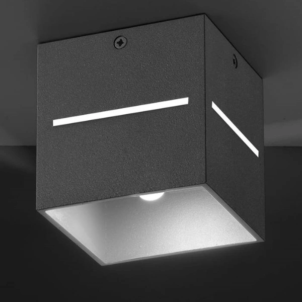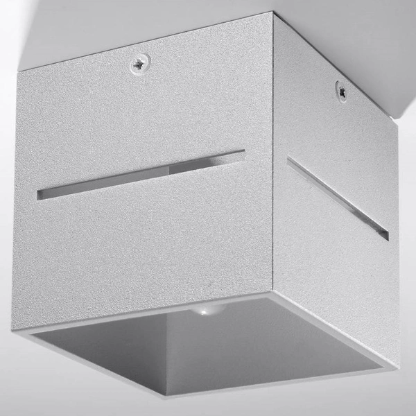 LOBO SL.0208 to nowoczesna lampa sufitowa z jednym źródłem światła. Wykonana została z aluminium kolorze szarym. Plafon ma kształt kostki z liniowymi wycięciami na bocznych ścianach, które przepuszczając światło tworzą niesamowity efekt. Oprawa będzie idealnym wyborem do wnętrz urządzonych w nowoczesnym oraz industrialnym stylu. Doskonale będzie się prezentować w: salonie, jadalni, sypialni, pokoju młodzieżowym, gabinecie, biurze, lokalu, przedpokoju, korytarzu. Wysokość plafonu to: 10 cm, szerokość 10 cm, głębokość 10 cm. Źródłem światła jest żarówka typu G9 o mocy max 12W LED w ilości 1 szt.