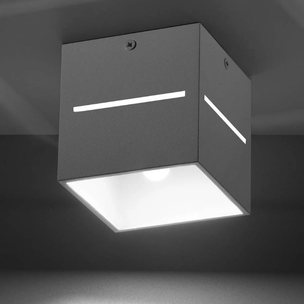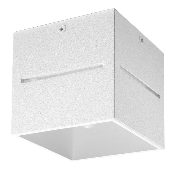 LOBO SL.0209 to nowoczesna lampa sufitowa z jednym źródłem światła. Wykonana została z aluminium kolorze białym. Plafon ma kształt kostki z liniowymi wycięciami na bocznych ścianach, które przepuszczając światło tworzą niesamowity efekt. Oprawa będzie idealnym wyborem do wnętrz urządzonych w nowoczesnym oraz industrialnym stylu. Doskonale będzie się prezentować w: salonie, jadalni, sypialni, pokoju młodzieżowym, gabinecie, biurze, lokalu, przedpokoju, korytarzu. Wysokość plafonu to: 10 cm, szerokość 10 cm, głębokość 10 cm. Źródłem światła jest żarówka typu G9 o mocy max 12W LED w ilości 1 szt.