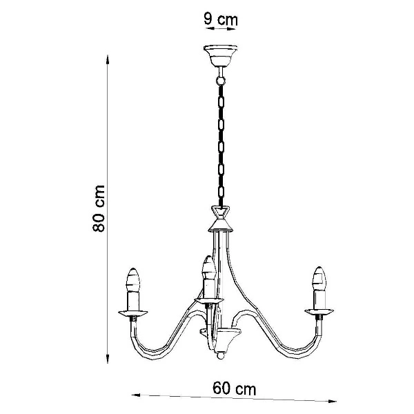 Żyrandol klasyczny świecznikowy trzy płomienny Sollux model MINERWA 3 ( E14, 3 x max 12W LED ).