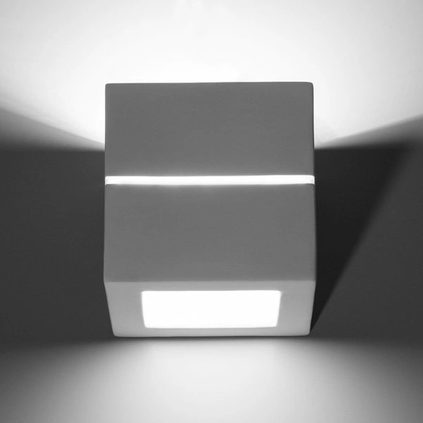 Kinkiet Sollux LEO LINE jest nowoczesną lampą ( E27, 1 X 60W MAX ). Została wykonana z ceramiki oraz szkła w kolorze białym. Wymiary: 15 x 15 x 15 cm.