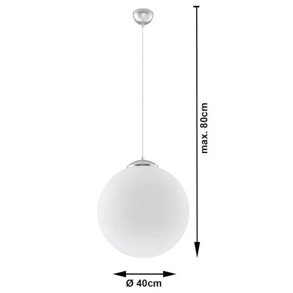 Lampa wisząca Sollux UGO 40 jest nowoczesną lampą z jednym źródłem światła ( E27, 1 X 60W MAX ). Została wykonana ze stali wykończonej w chromie oraz szkła w kolorze białym. Wymiary: 40 x 40 x 80 cm.