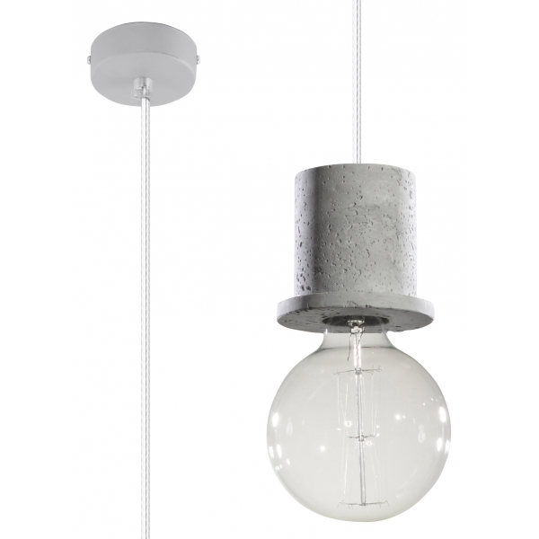 BONO SL.0283 to nowoczesna lampa wisząca z jednym źródłem światła. Lampa składa się z betonowej oprawy żarówki zwisającej z okrągłej rozety. Oprawa została wykonana w taki sposób, że odkryta żarówka jest elementem wyróżniającym, dlatego warto wybrać jej dekoracyjny model. Lampa będzie idealnym wyborem do wnętrz urządzonych w stylu: industrialnym oraz loftowym. Doskonale będzie się prezentować w: salonie, jadalni, sypialni, pokoju młodzieżowym, kuchni, gabinecie, lokalu, biurze. Dużą zaletą jest możliwość regulacji wysokości. Wysokość maksymalna lampy to: 100 cm, szerokość 11,5 cm, długość 11,5 cm. Źródłem światła jest żarówka typu E27 o mocy max 60W w ilości 1 szt.