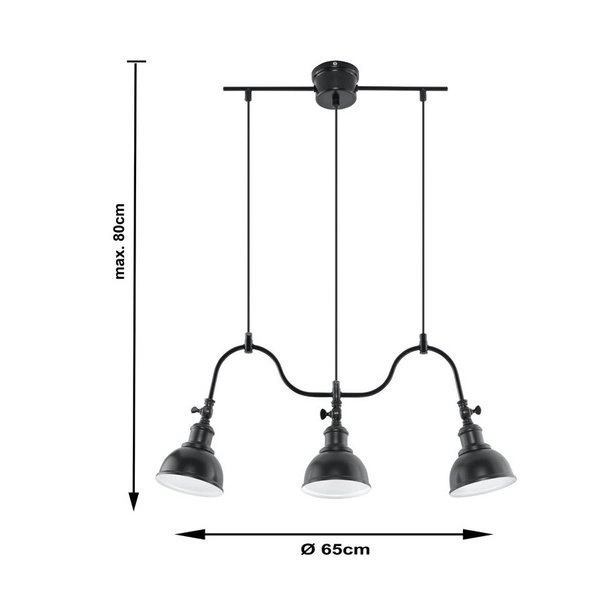 Lampa wisząca MARE 3 marki SOLLUX to żyrandol wyposażony w 3 źródła światła ( E27, 3 X 60 W ( MAX )). Wykonana jest z stali pomalowanego na kolor czarny. Wymiary: 65 x 10 x 80 cm.