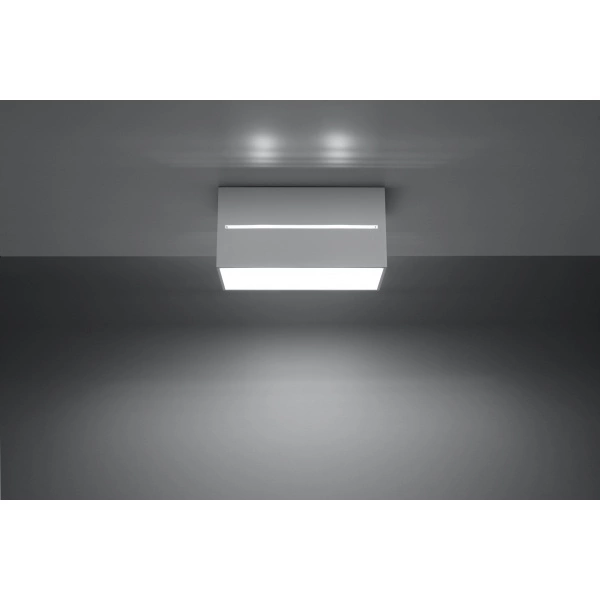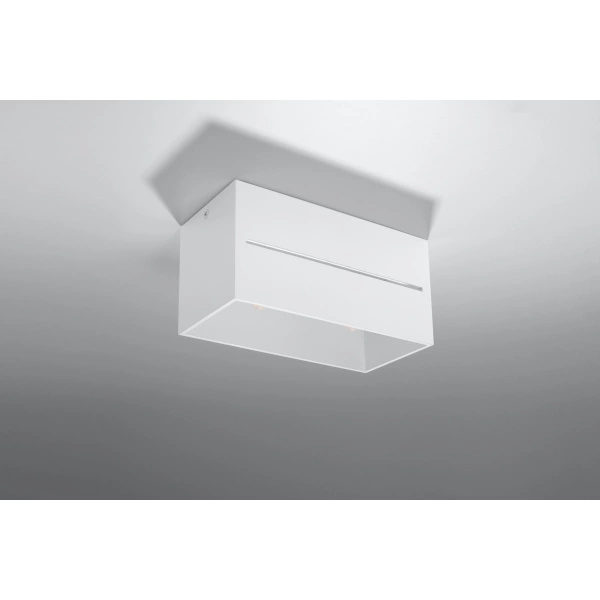 LOBO MAXI SL.0383 to nowoczesna lampa sufitowa z dwoma źródłami światła. Wykonana została z aluminium kolorze białym. Plafon ma kształt prostopadłościanu z liniowymi wycięciami na bocznych ścianach, które przepuszczając światło tworzą niesamowity efekt. Oprawa będzie idealnym wyborem do wnętrz urządzonych w nowoczesnym oraz industrialnym stylu. Doskonale będzie się prezentować w: salonie, jadalni, sypialni, pokoju młodzieżowym, gabinecie, biurze, lokalu, przedpokoju, korytarzu. Wysokość plafonu to: 10 cm, szerokość 20 cm, głębokość 10 cm. Źródłem światła jest żarówka typu G9 o mocy max 40W w ilości 2 szt.