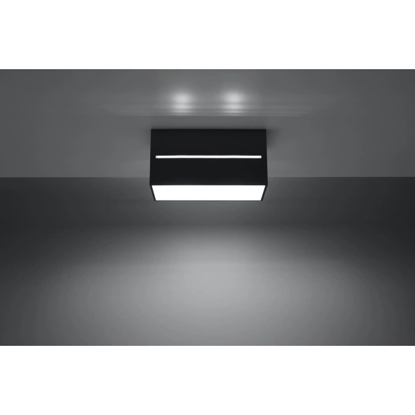 LOBO MAXI SL.0384 to nowoczesna lampa sufitowa z dwoma źródłami światła. Wykonana została z aluminium kolorze czarnym. Plafon ma kształt prostopadłościanu z liniowymi wycięciami na bocznych ścianach, które przepuszczając światło tworzą niesamowity efekt. Oprawa będzie idealnym wyborem do wnętrz urządzonych w nowoczesnym oraz industrialnym stylu. Doskonale będzie się prezentować w: salonie, jadalni, sypialni, pokoju młodzieżowym, gabinecie, biurze, lokalu, przedpokoju, korytarzu. Wysokość plafonu to: 10 cm, szerokość 20 cm, głębokość 10 cm. Źródłem światła jest żarówka typu G9 o mocy max 40W w ilości 2 szt.