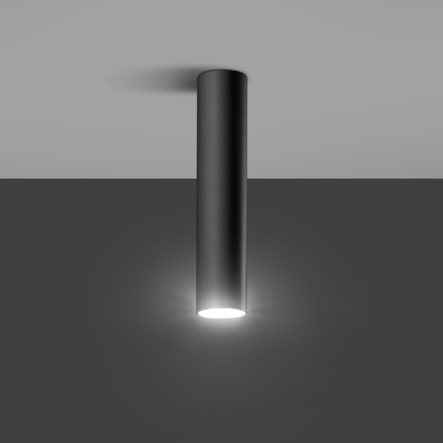 Plafon Sollux Lagon jest lampą sufitową jedno punktową o max mocy 40 W ( GU10, 1x40W, ). Została wykonana ze stali w kolorze czarnym. Wymiary: 8 x 8 x 30 cm.