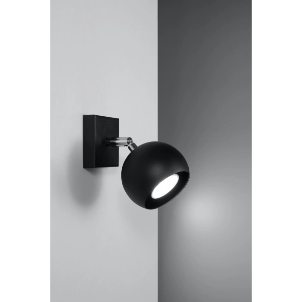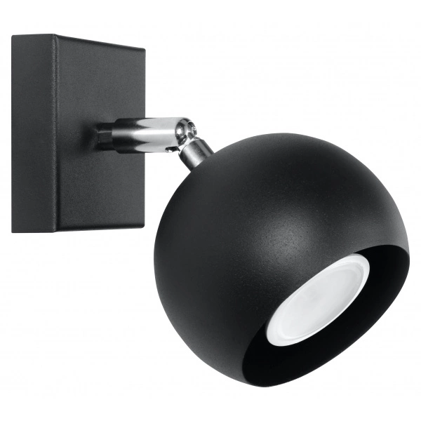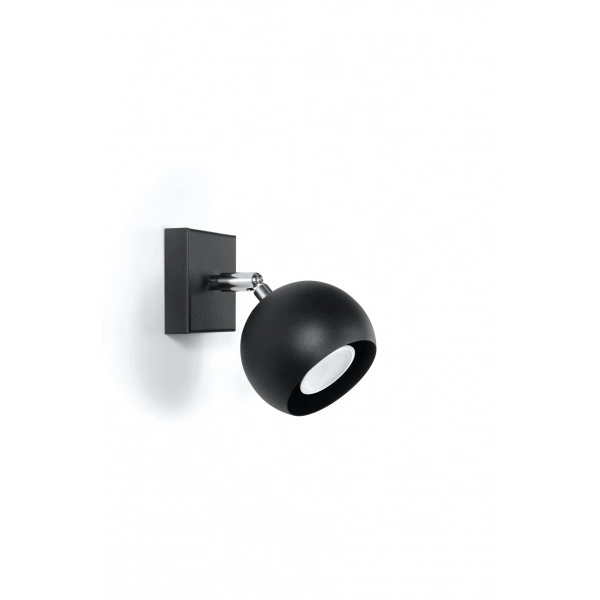 OCULARE SL.0443 to nowoczesna lampa ścienna z jednym źródłem światła. Wykonana została z wysokiej jakości metalu w kolorze czarnym. Lampa składa się z kwadratowej rozety z krótkim ramieniem, na którym osadzono reflektorek w kształcie ściętej kuli. Reflektorek ma możliwość regulacji punktu padania światła. Kinkiet będzie idealnym wyborem do nowoczesnych wnętrz. Doskonale będzie się prezentować w: salonie, jadalni, sypialni, pokoju młodzieżowym, gabinecie, biurze, przedpokoju, korytarzu. Wysokość kinkietu to: 15 cm, szerokość 10 cm, głębokość 15 cm. Źródłem światła jest żarówka typu GU10 o mocy max 40W w ilości 1 szt.
