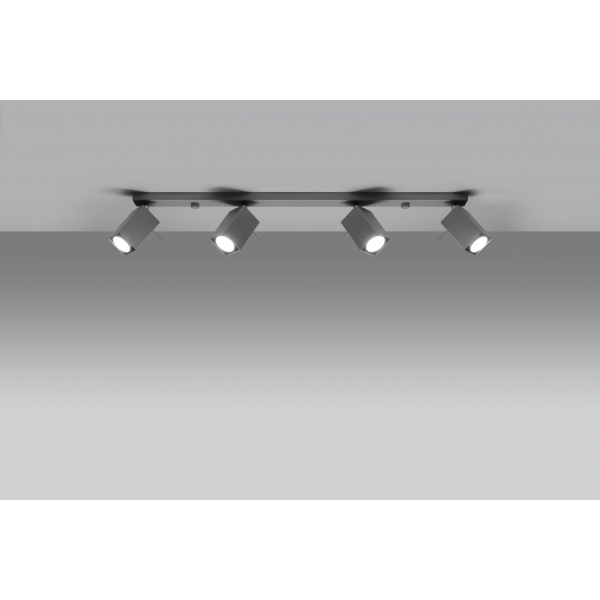 MERIDA 4L SL.0461 to nowoczesna lampa sufitowa z czterema źródłami światła. Wykonana została z wysokiej jakości metalu w kolorze szarym. Lampa składa się z podłużnej podsufitki z krótkimi ramionami, na których osadzono cztery reflektorki. Reflektorki mają możliwość regulacji punktu padania światła. Lampa będzie idealnym wyborem do nowoczesnych oraz industrialnych wnętrz. Doskonale będzie się prezentować w: salonie, jadalni, sypialni, pokoju młodzieżowym, gabinecie, biurze, przedpokoju, korytarzu. Wysokość lampy to: 15 cm, szerokość 80 cm, głębokość 8 cm. Źródłem światła jest żarówka typu GU10 o mocy max 40W w ilości 4 szt.