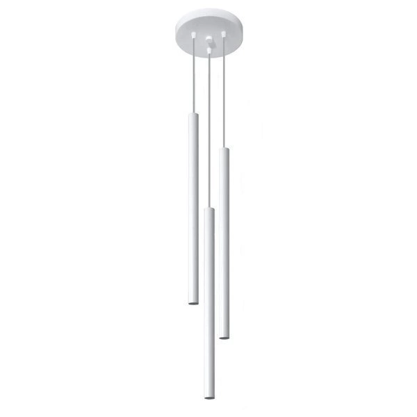Lampa wisząca PASTELO 3P marki SOLLUX wyposażona jest w trzy źródła światła ( , 3 X G9 40W ( MAX )). Wykonana jest ze stali w kolorze białym. Wymiary: 8 X 20 x 100 cm ( max ).