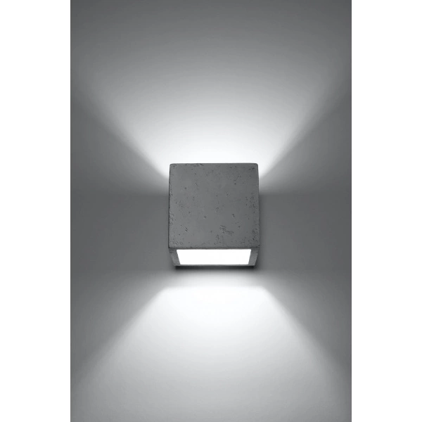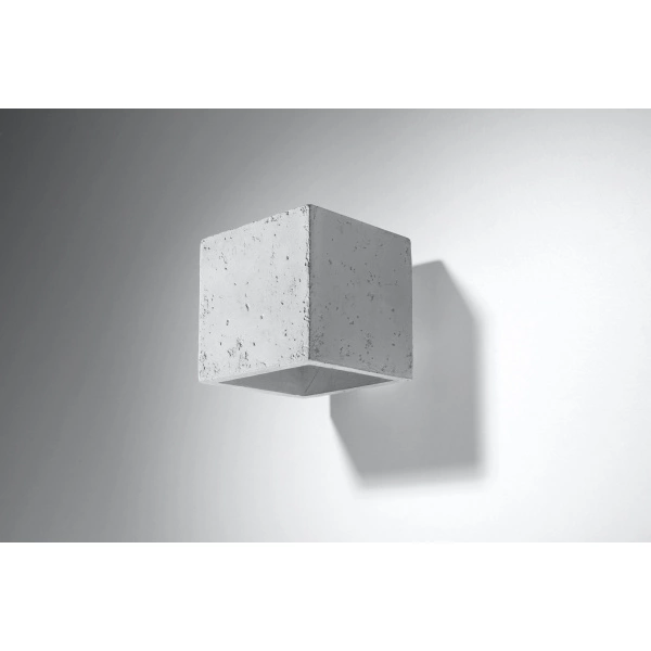 QUAD SL.0487 to nowoczesna lampa ścienna z jednym źródłem światła. Kinkiet ma kształt sześcianu, wykonany został z betonu w kolorze szarym. Będzie idealnym wyborem do wnętrz urządzonych w stylu: nowoczesnym, klasycznym, industrialnym oraz loftowym. Doskonale będzie się prezentować w: salonie, jadalni, sypialni, pokoju młodzieżowym, gabinecie, lokalu, biurze, przedpokoju, korytarzu. Wysokość kinkietu to: 10 cm, szerokość 10 cm, długość 12 cm. Źródłem światła jest żarówka typu G9 o mocy max 40W w ilości 1 szt.