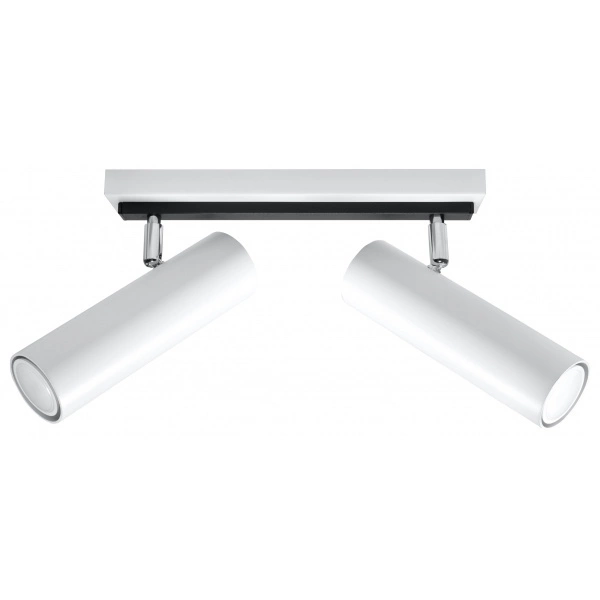 DIREZIONE 2 SL.0496 to nowoczesna lampa sufitowa z dwoma źródłami światła. Wykonana została z wysokiej jakości metalu w kolorze białym. Lampa składa się z podłużnej podsufitki z krótkimi ramionami, na których osadzono dwa reflektorki w kształcie walca. Reflektorki mają możliwość regulacji punktu padania światła. Lampa będzie idealnym wyborem do nowoczesnych wnętrz. Doskonale będzie się prezentować w: salonie, jadalni, sypialni, pokoju młodzieżowym, gabinecie, biurze, przedpokoju, korytarzu. Wysokość lampy to: 20 cm, szerokość 30 cm, głębokość 18 cm. Źródłem światła jest żarówka typu GU10 o mocy max 40W w ilości 2 szt.