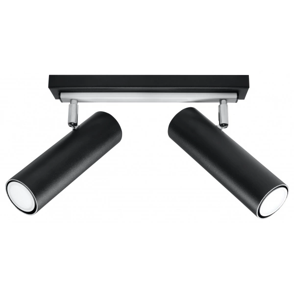 DIREZIONE 2 SL.0500 to nowoczesna lampa sufitowa z dwoma źródłami światła. Wykonana została z wysokiej jakości metalu w kolorze czarnym. Lampa składa się z podłużnej podsufitki z krótkimi ramionami, na których osadzono dwa reflektorki w kształcie walca. Reflektorki mają możliwość regulacji punktu padania światła. Lampa będzie idealnym wyborem do nowoczesnych wnętrz. Doskonale będzie się prezentować w: salonie, jadalni, sypialni, pokoju młodzieżowym, gabinecie, biurze, przedpokoju, korytarzu. Wysokość lampy to: 20 cm, szerokość 30 cm, głębokość 18 cm. Źródłem światła jest żarówka typu GU10 o mocy max 40W w ilości 2 szt.