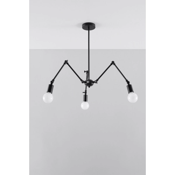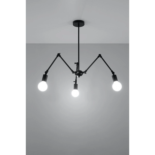 STARK 3 SL.0611 to nowoczesna lampa sufitowa z trzema źródłami światła. Wykonana została z wysokiej jakości stali w kolorze czarnym. Elementem wyróżniającym lampy są regulowane ramiona. Żyrandol będzie idealnym wyborem do nowoczesnych wnętrz. Doskonale będzie się prezentować w: salonie, jadalni, sypialni, pokoju młodzieżowym, gabinecie, lokalu, kuchni. Wysokość lampy to: 100 cm, szerokość 50 cm, głębokość 50 cm. Źródłem światła jest żarówka typu E27 o mocy max 60W w ilości 3 szt.