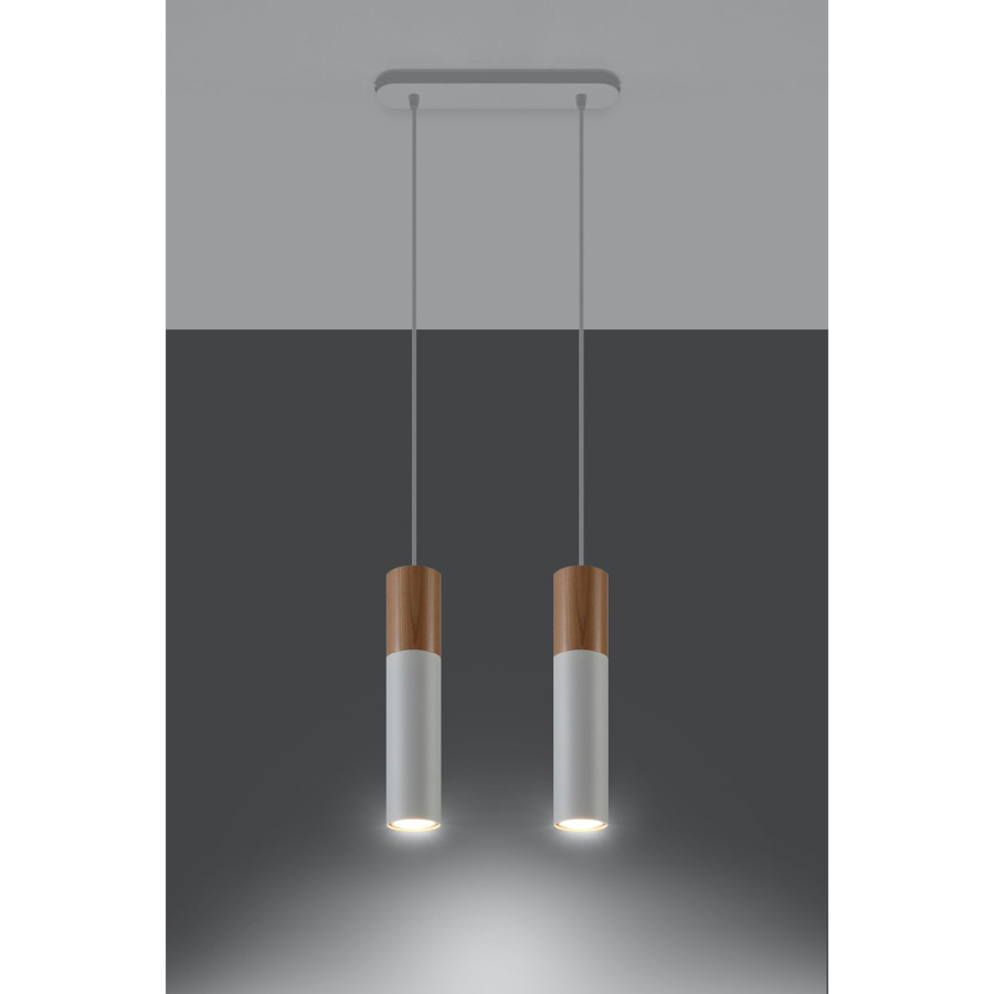 Lampa wisząca PABLO 2 biała stal, naturalne drewno, SL.0629