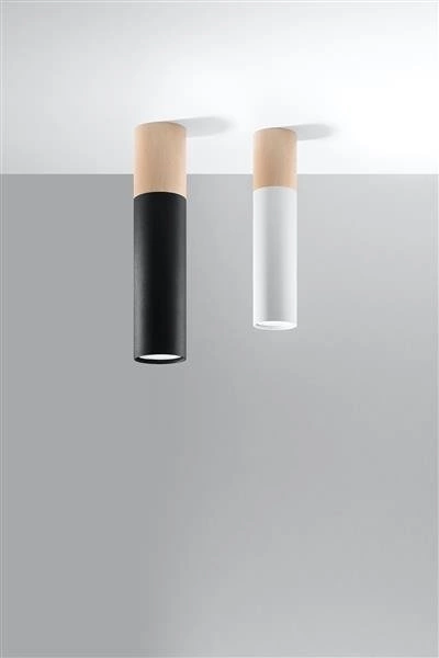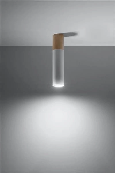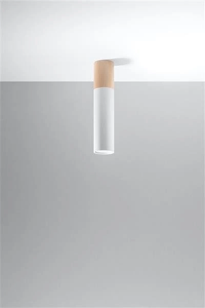 Źródło światła: GU10, 1x40W, 50Hz, 220V, IP20 Żarówki nie ma w komplecie Wymiary: 8 x 8 x 30 cm Materiał: Stal, drewno Kolor: Biały, naturalne drewno