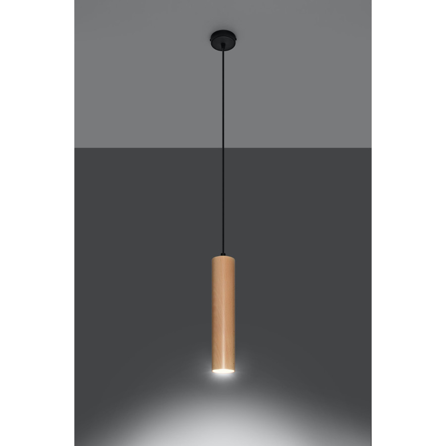 Lampa sufitowa LINO 1 marki SOLLUX wyposażona jest w jedno źródło światła ( 1 X GU10, 40W ( MAX )). Wykonana jest ze stali w kolorze czarnym oraz drewna w kolorze naturalne drewno. Wymiary: 8 X 8 x 100 cm.