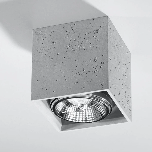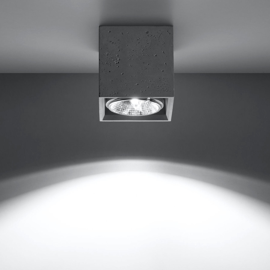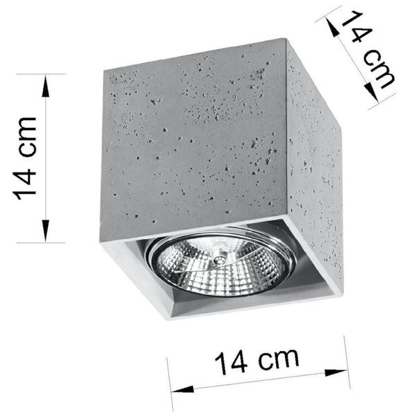 Lampa sufitowa VALDE marki SOLLUX wyposażona jest w jedno źródło światła ( 1 X GU10, 40W ( MAX )). Wykonana jest z betonu w kolorze szarym. Wymiary: 14 X 14 x 11 cm.