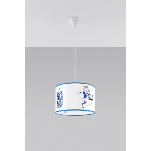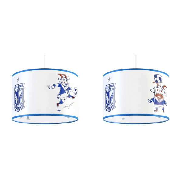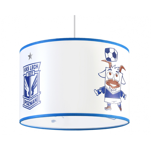 KKS LECH 30 SL.0724 to nowoczesna lampa wisząca z jednym źródłem światła przeznaczona do dziecięcego pokoju. Wykonana została z tworzywa sztucznego w kolorze biało-niebieskim. Lampa będzie idealnym wyborem do pokoju małego kibica Lecha Poznań. Wysokość lampy to: 82 cm (możliwość regulacji), szerokość 30 cm, głębokość 30 cm. Źródłem światła jest żarówka typu E27 o mocy max 60W w ilości 1 szt.