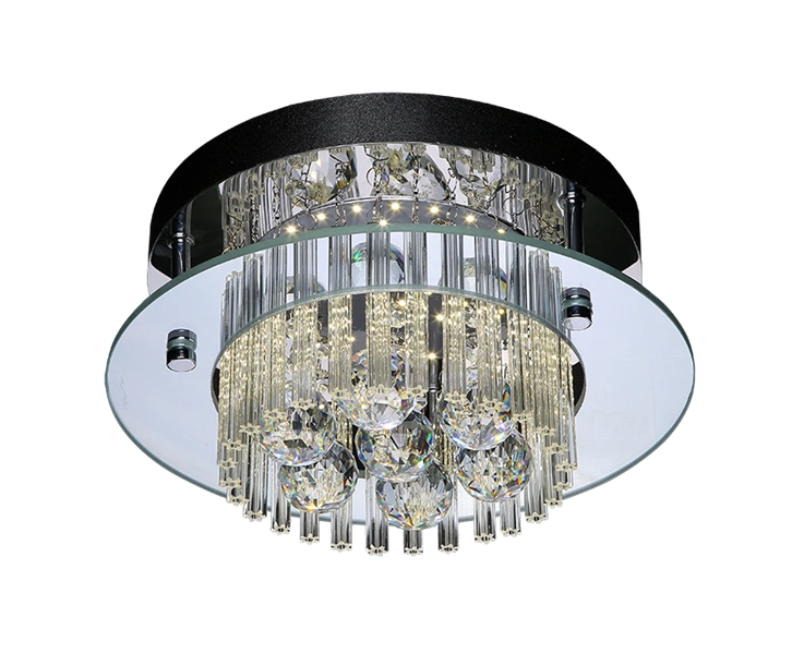 Plafon Cerro łączy w sobie zarówno styl klasyczny jak i nowoczesny. Delikatna linia lampy w połączeniu z kryształowymi elementami tworzy spójną całość. Cerro odnajdzie się zarówno w jasnych, przestronnych salonach, salach bankietowych oraz jadalniach. Plafon z zawartym źródłem światła w postaci oświetlenia LED.