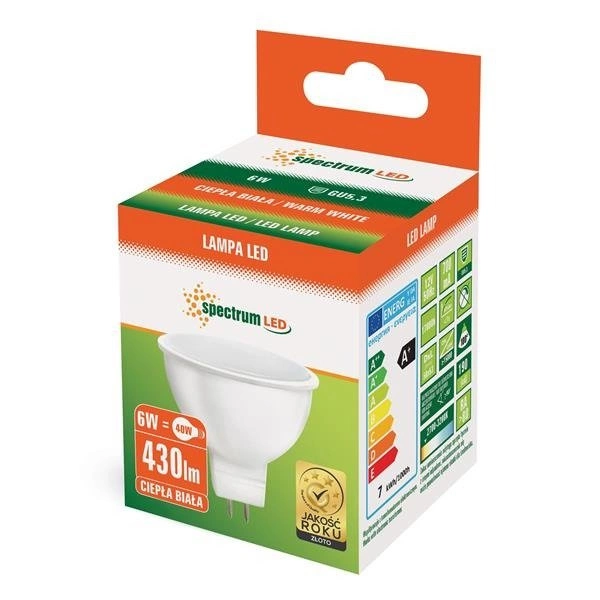 LED MR16 12V 6W SMD WW Z MLECZNĄ SZYBKĄ  SPECTRUM +