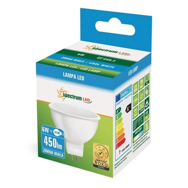 LED MR16 12V 6W SMD CW Z MLECZNĄ SZYBKĄ  SPECTRUM +